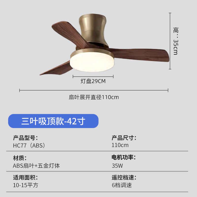 Лампа-вентилятор цвета ореха, ретро-лампа-вентилятор, потолочный вентилятор, лампа для спальни, мягкий ветер, бесшумный потолочный вентилятор для ресторана, встроенный вентилятор