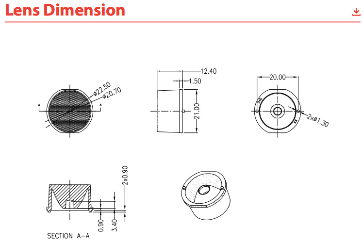 雷笛克 户外防水透镜 直径22.5mm 亚克力材料 角度10度 15度 24度 30度 60度 10*15度 偏光 10*30度 10*45度 10*60度