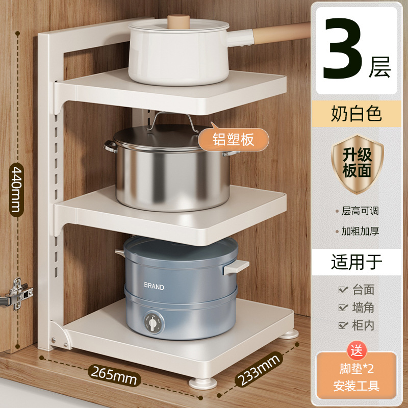 Серая кухонная полка для кастрюль, многослойная полка для хранения, складная многофункциональная полка для хранения кастрюль под раковиной, напольная столешница