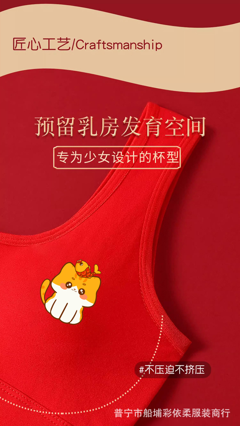 Топ-майка из чистого хлопка для девочек на год рождения (2026), красное нижнее белье для девочек в период развития, для девочек-подростков и учащихся средней школы