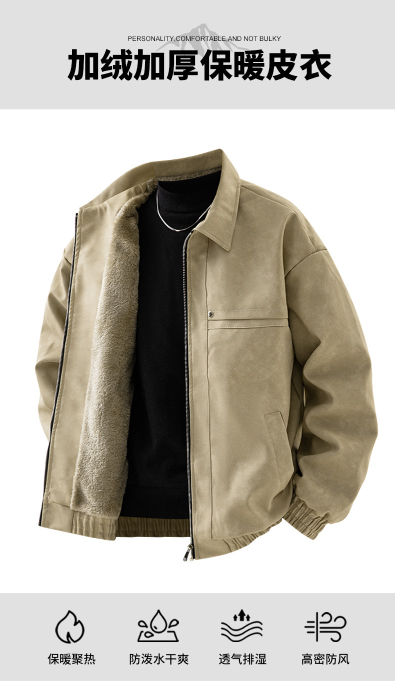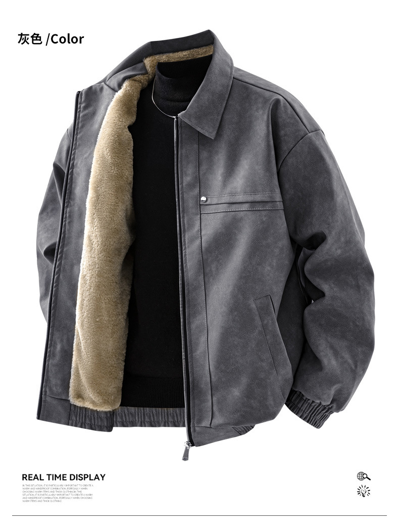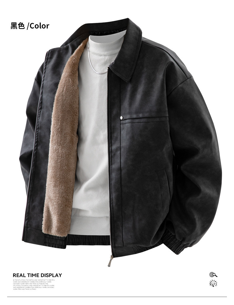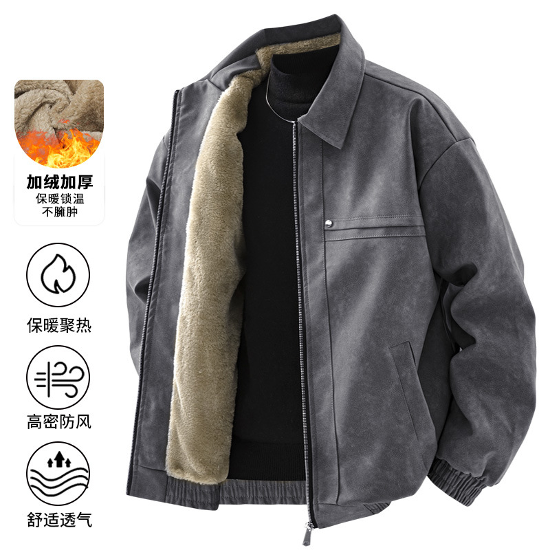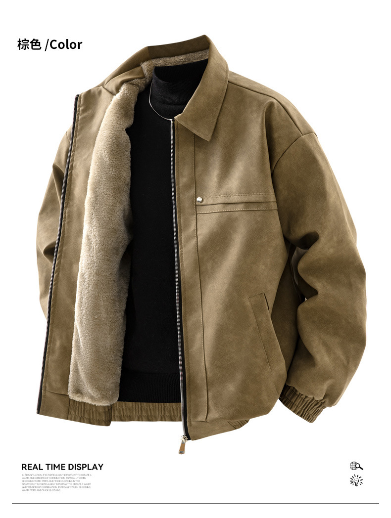 Зимняя кожаная куртка в американском ретро-стиле с флисовой подкладкой, стильная мужская куртка для весны и осени с флисом и утолщенной подкладкой.