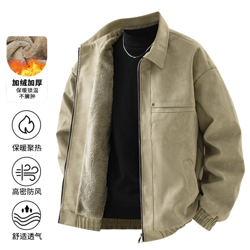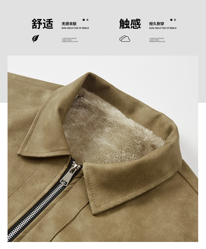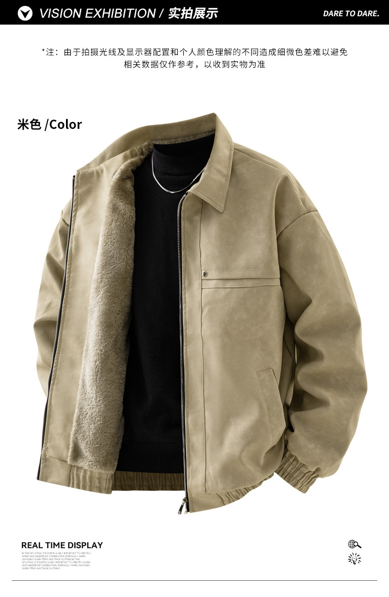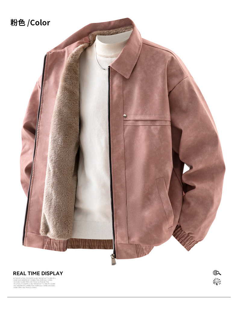 Зимняя кожаная куртка в американском ретро-стиле с флисовой подкладкой, стильная мужская куртка для весны и осени с флисом и утолщенной подкладкой.