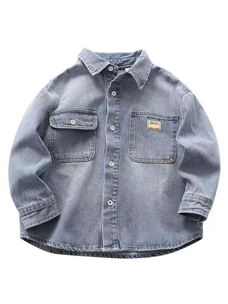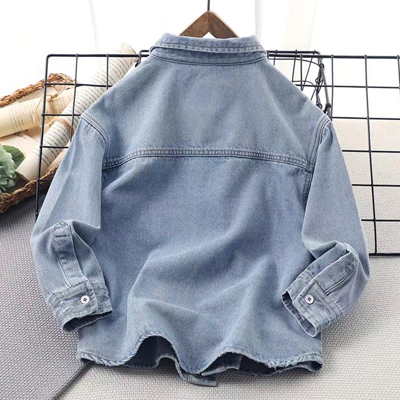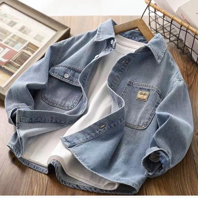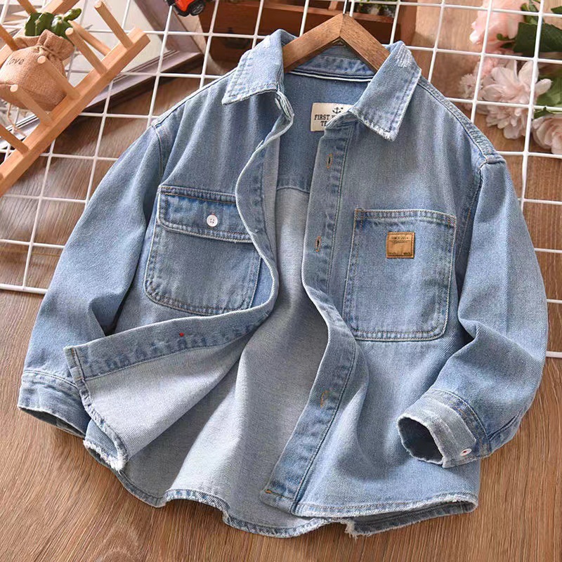 Джинсовая рубашка для мальчиков Весна и Осень 2025 Новый стиль ребенок с длинными рукавами повседневная куртка рубашка кардиган топ прилив
