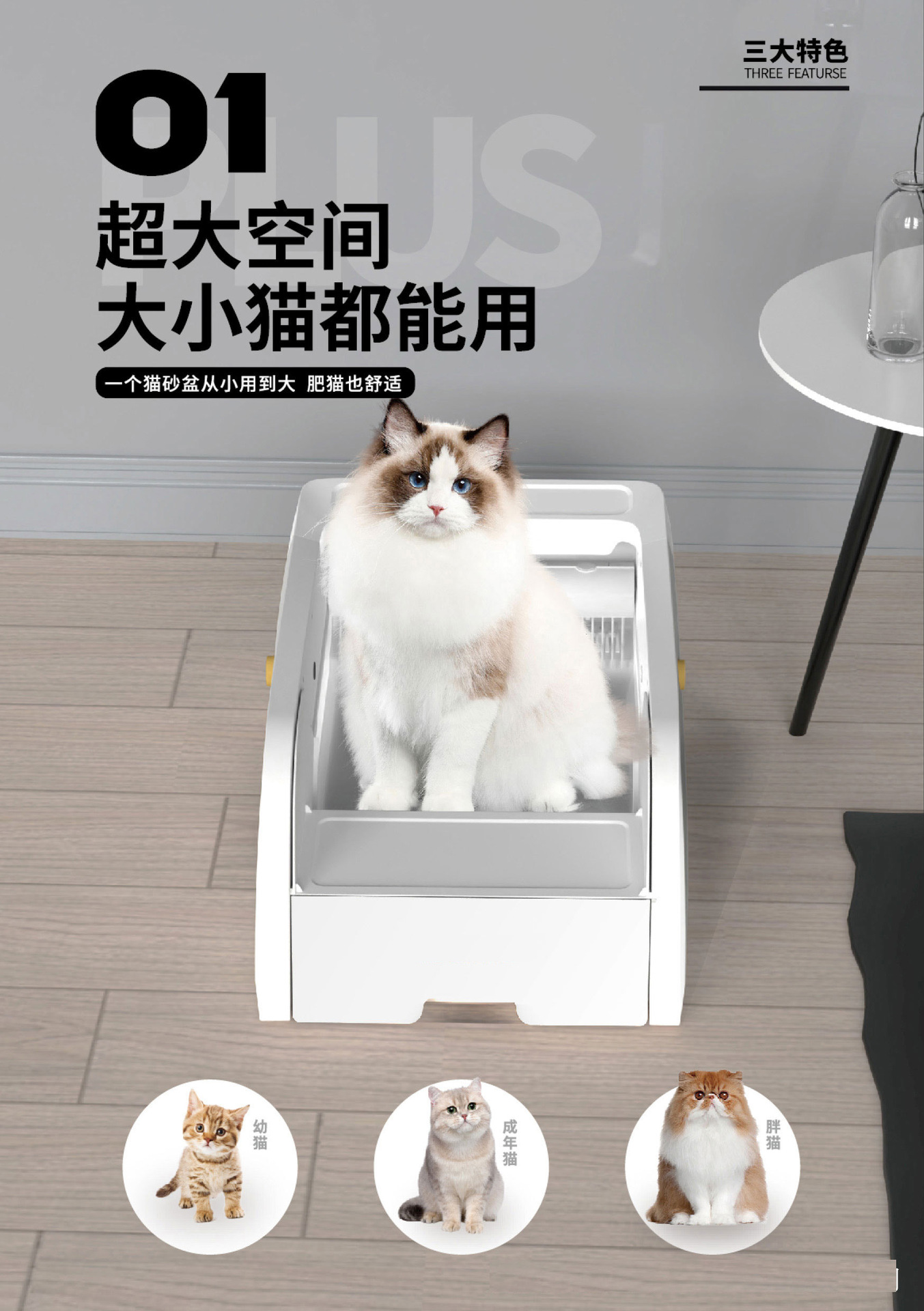 全自动智能猫砂盆开放式猫厕所检测宠物清洁设备大容量摄像头感应