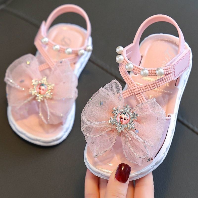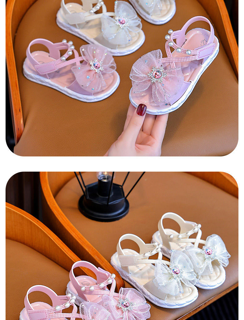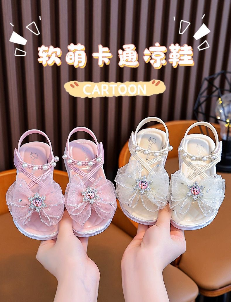 Сандалии для девочек Новый 2024 летний ребенок мягкая подошва липучка принцессы обувь бант маленький мальчик девочка лето