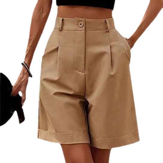 2025 Amazon Новая женская летняя тонкая с высокой талией, свободная тонкая прямая повседневная средняя брюки, дышащая широкая нога, укороченные брюки