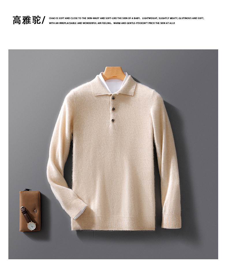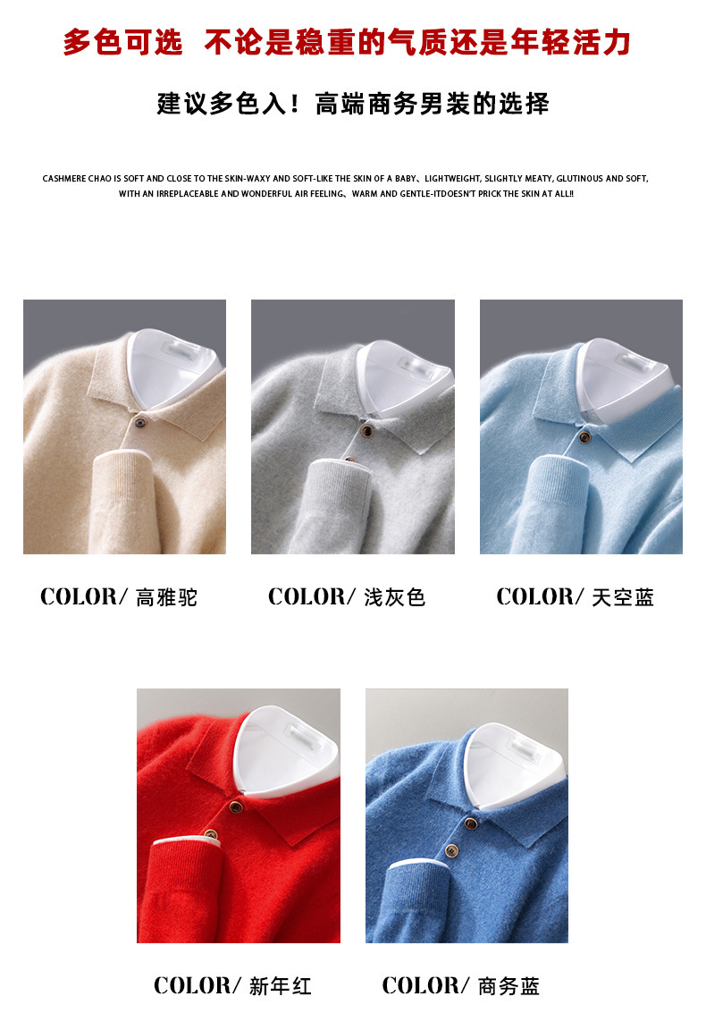 Осенний и зимний новый мужской 100% чистый свитер бизнес повседневный POLO воротник вязаный отворот пряжка