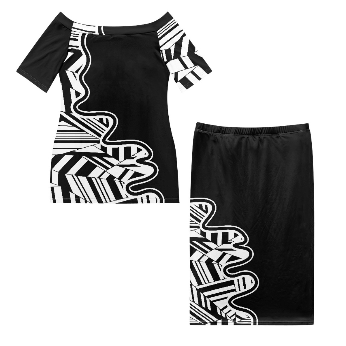 Самоа Традиционный набор из двух частей абстрактный узор с принтом женские рубашки с короткими рукавами длинная юбка полиэстер аммиачной смешанной островной одежды