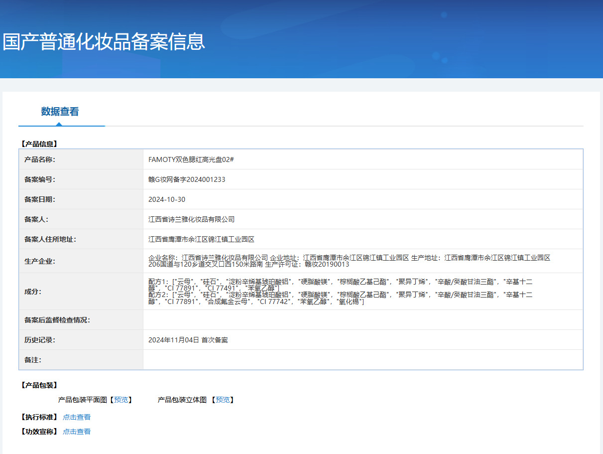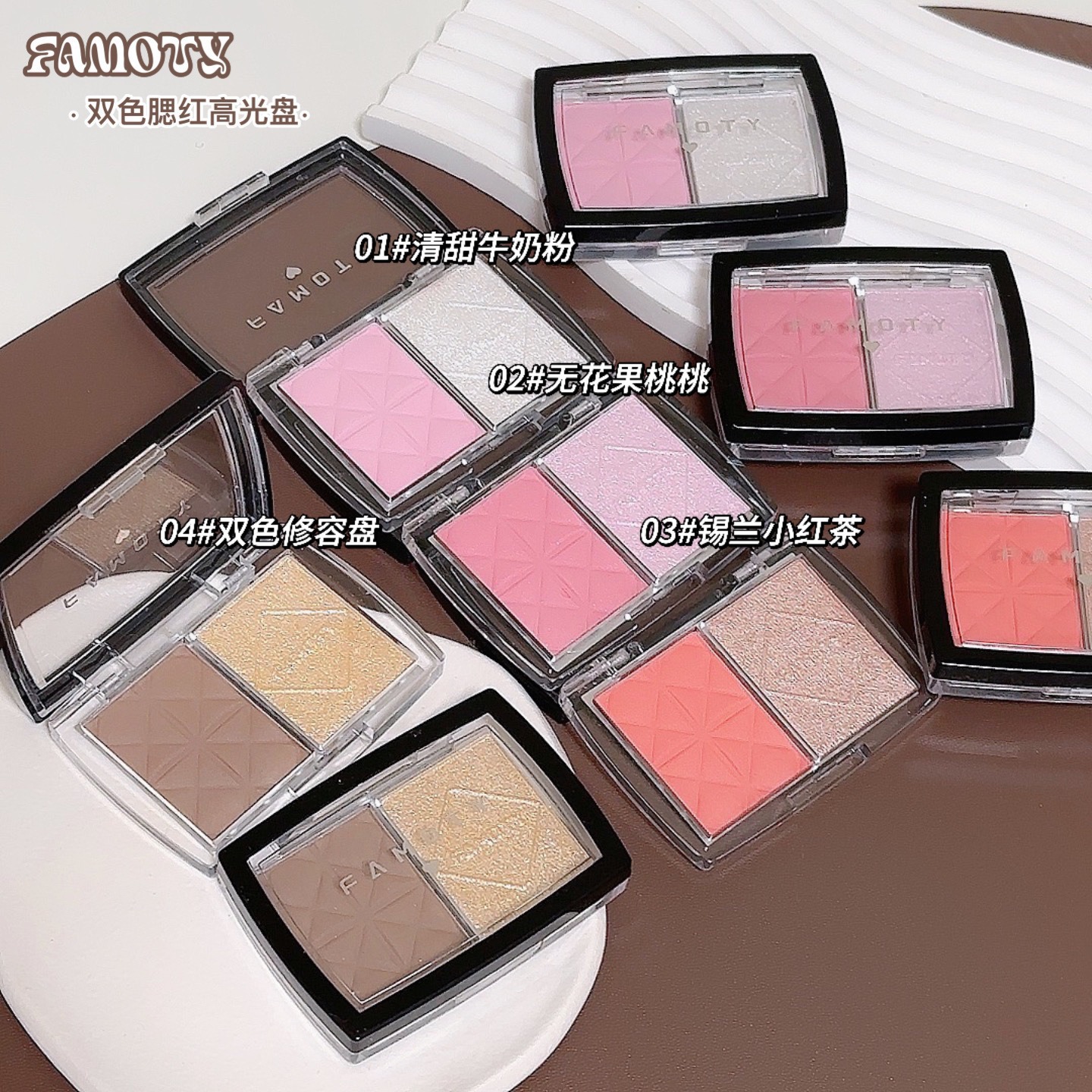产品名称:FAMOTY双色腮红高光盘