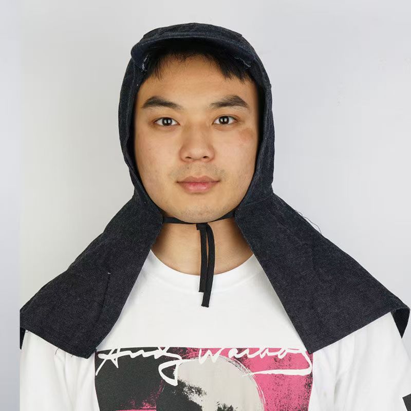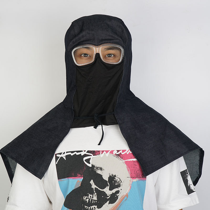 Шаль-шапка в маленьком цветочном стиле (с дыхательным клапаном); Черная шапка-шаль с рисунком питона (с дыхательным клапаном); Зеленая камуфляжная шапка-шаль (с дыхательным клапаном); Желтая камуфляжная шапка-шаль (с дыхательным клапаном); Джинсовая кружевная шапка-шаль; Джинсовый пуловер, шапка-шаль; Джинсовая шапка-шапка очки