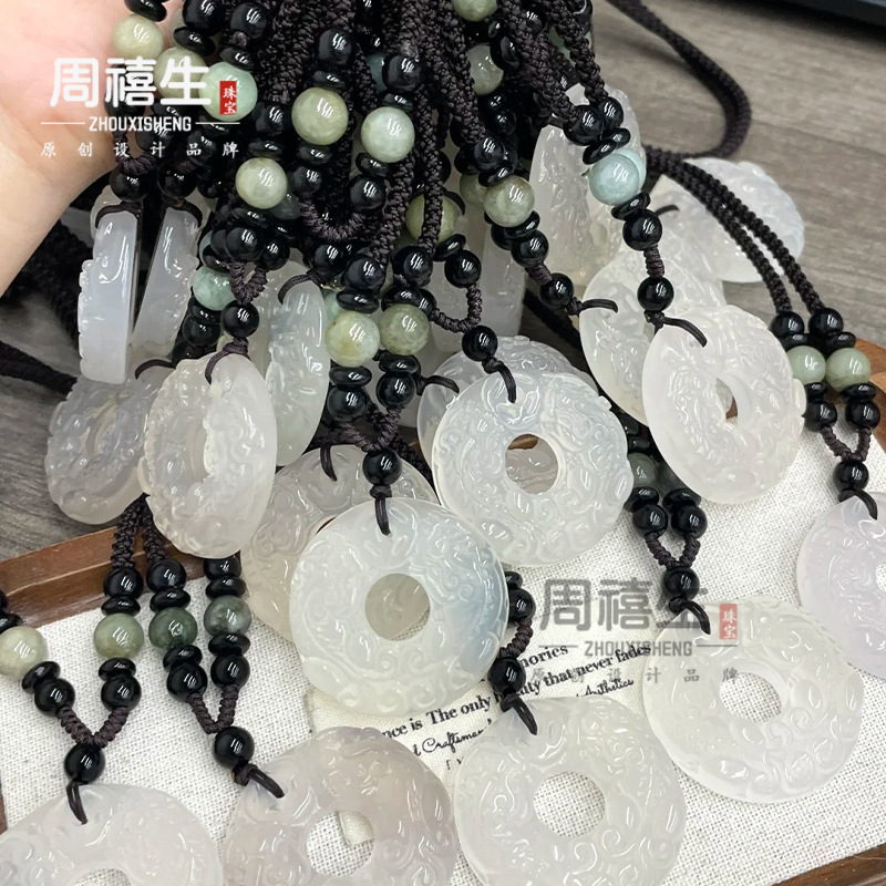 Натуральный обсидиан двойной кулон белый халцедон двойной головастик