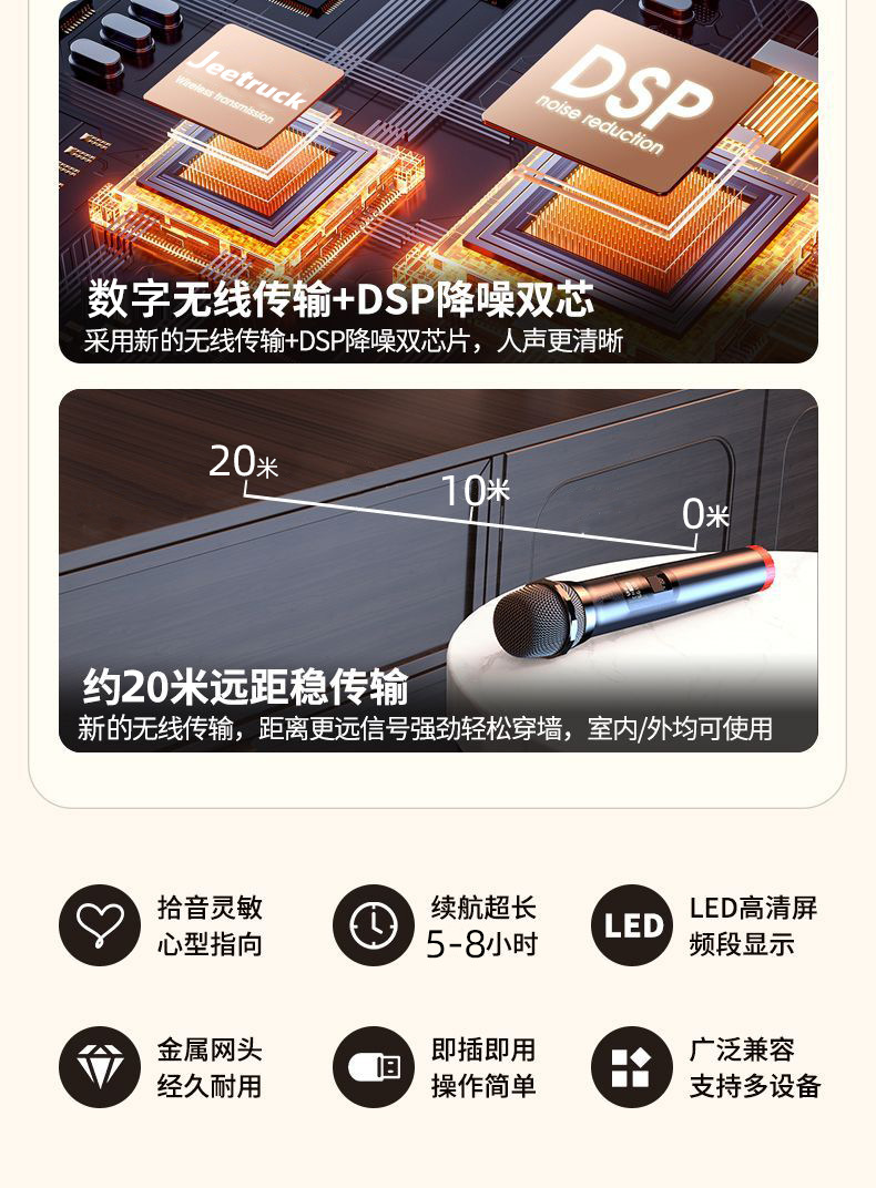 Универсальный трансграничный микрофон, двойного назначения для домашнего и наружного использования, портативный профессиональный микрофон с шумоподавлением для караоке и прямых трансляций.
