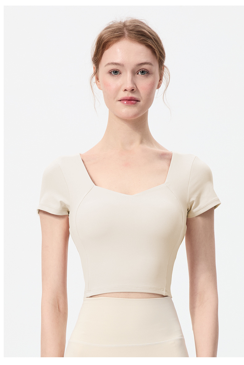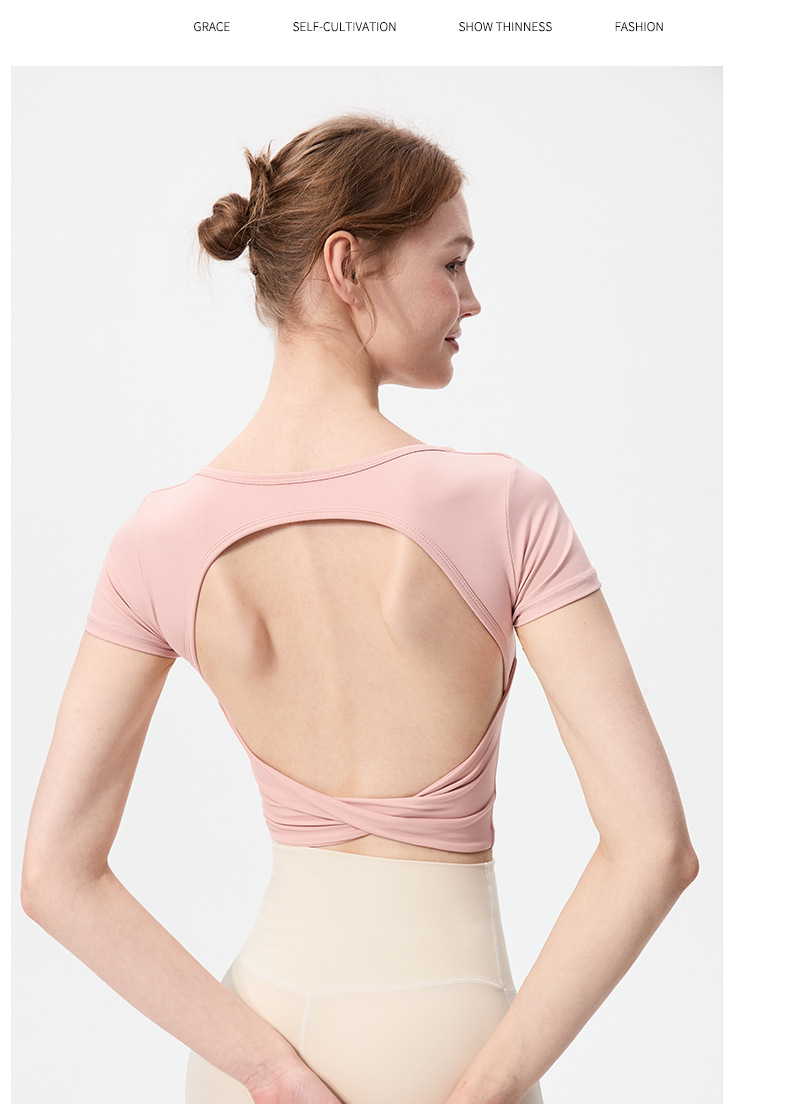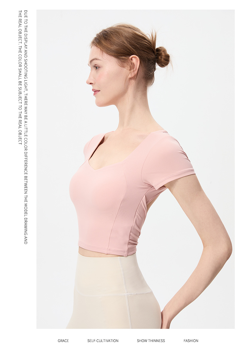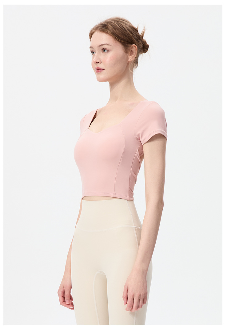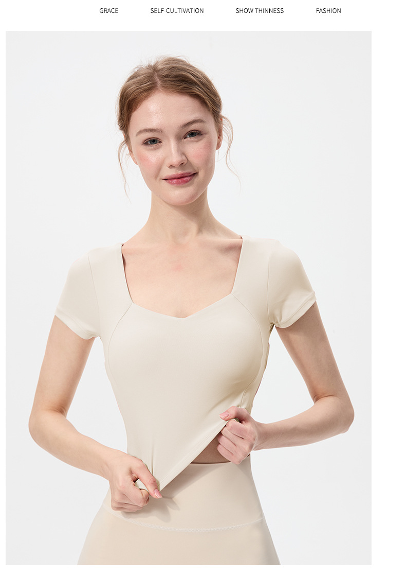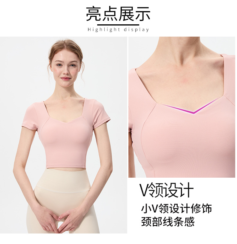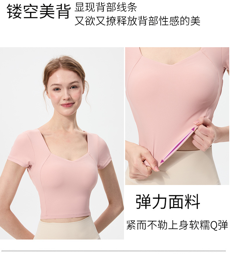 2025 весенний спортивный с короткими рукавами женский кубок фитнес-бег футболка сексуальная одежда для йоги без спинки