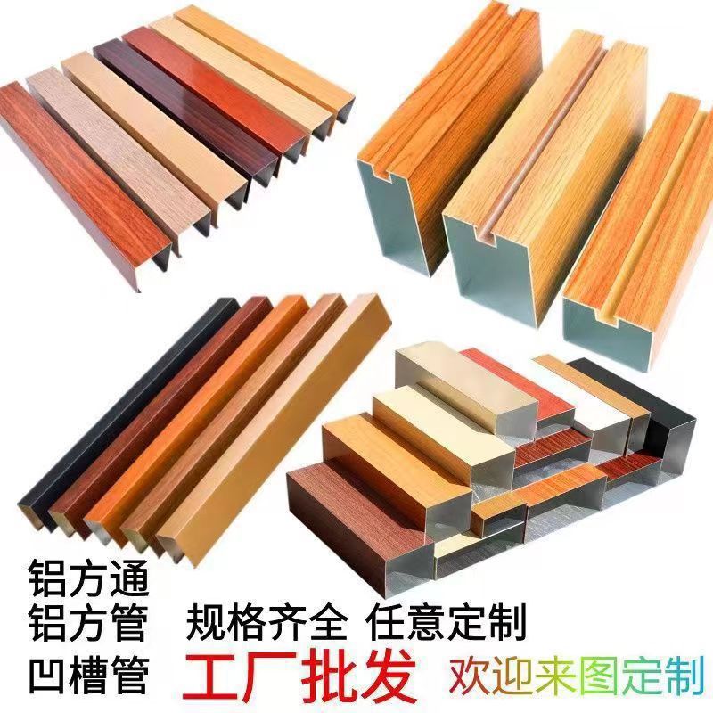 Прямые продажи с завода: алюминиевые квадратные трубы для потолочного декора, навесных стен, перегородок, алюминиевые решетчатые профили, квадратные трубы, U-образные профили, алюминиевые квадратные трубы с текстурой под дерево.