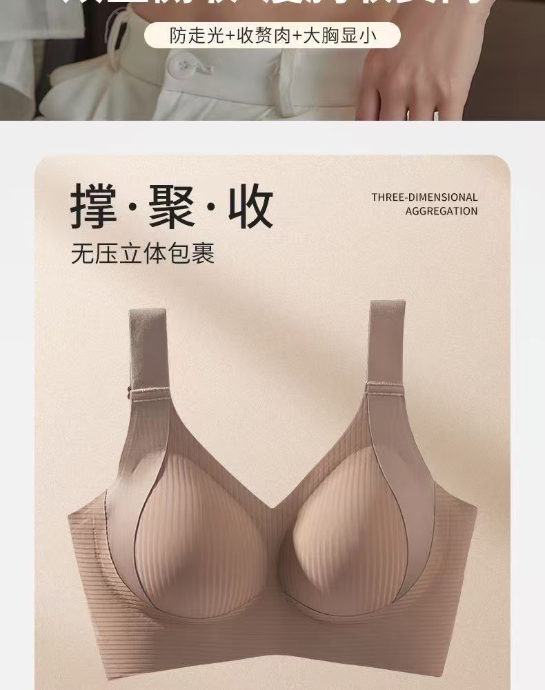 собрать; Бесследный; дышащий; подталкивать; невидимый; Впитывать пот; Регулируемый тип; удобный; Боковой сбор; Закройте вторичные груди; Большая грудь кажется маленькой