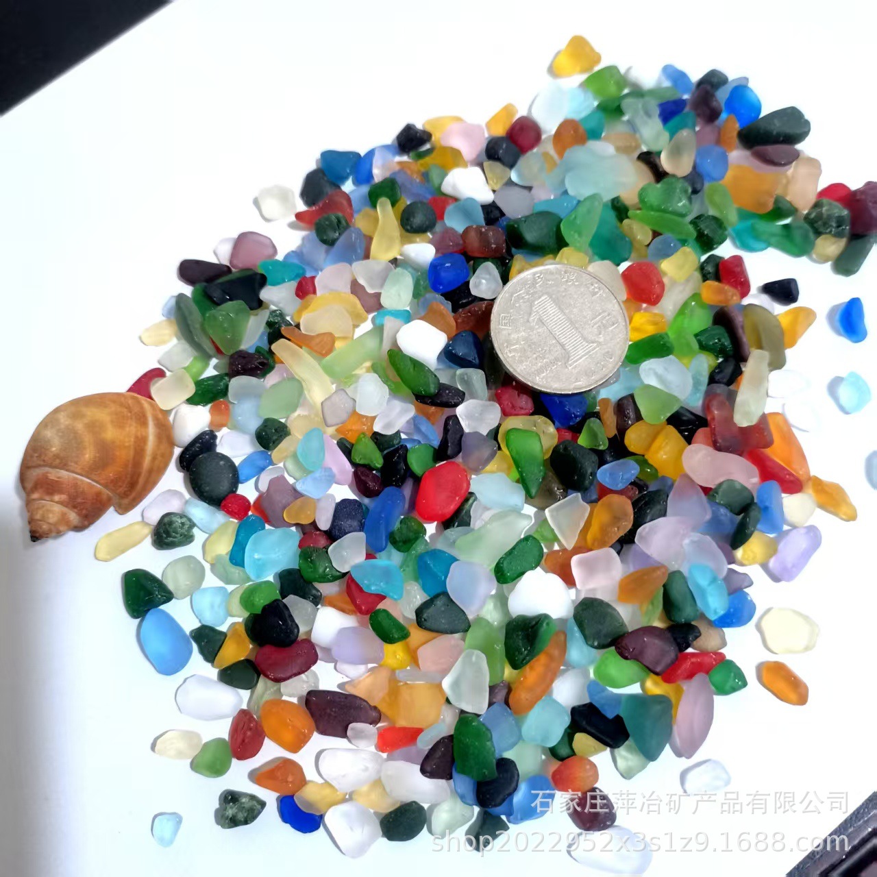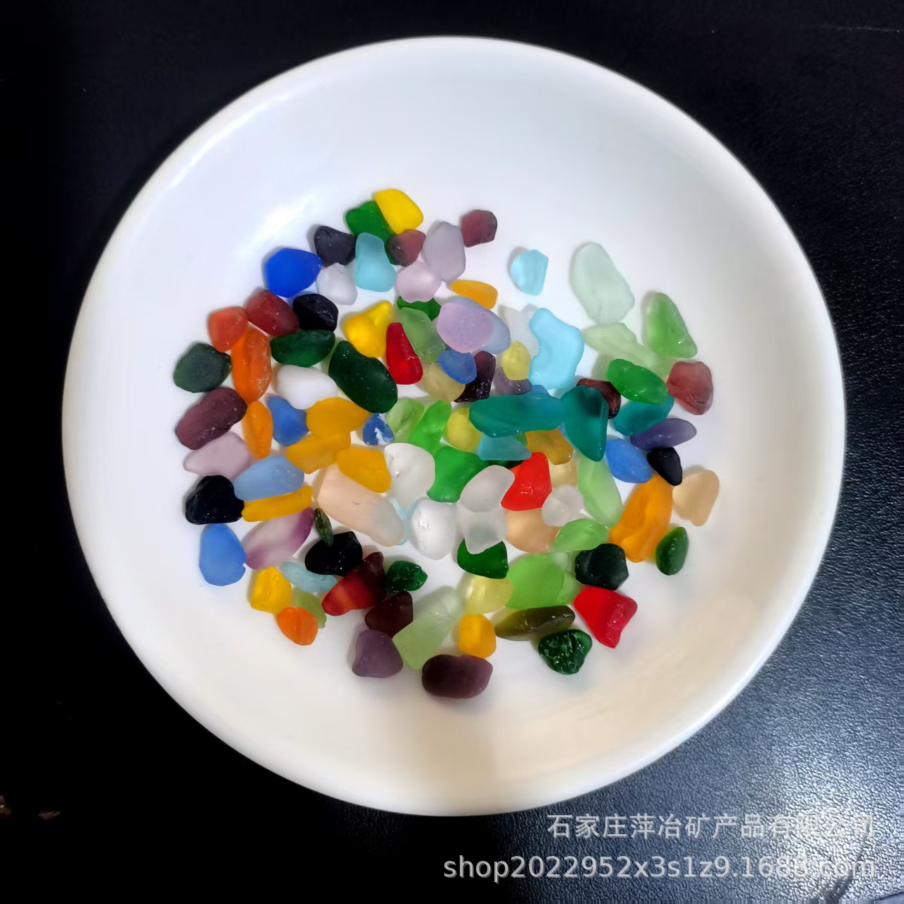 本公司常年供应彩色蒙砂海玻璃石系列产品,均为原色非染色,本款尺寸8-13mm,每件500克装点击链接线等功能