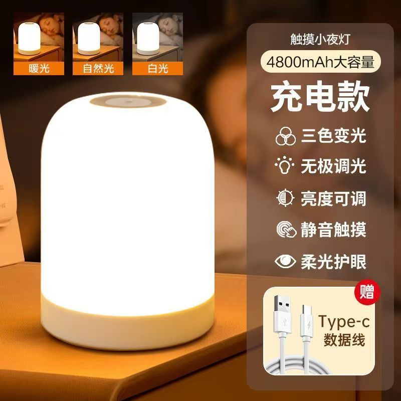 Ночник с зарядкой, сенсорный светильник для сна, освещение для спальни, настольная лампа для кормления ребенка, прикроватная лампа, лампа для защиты глаз, мягкий свет