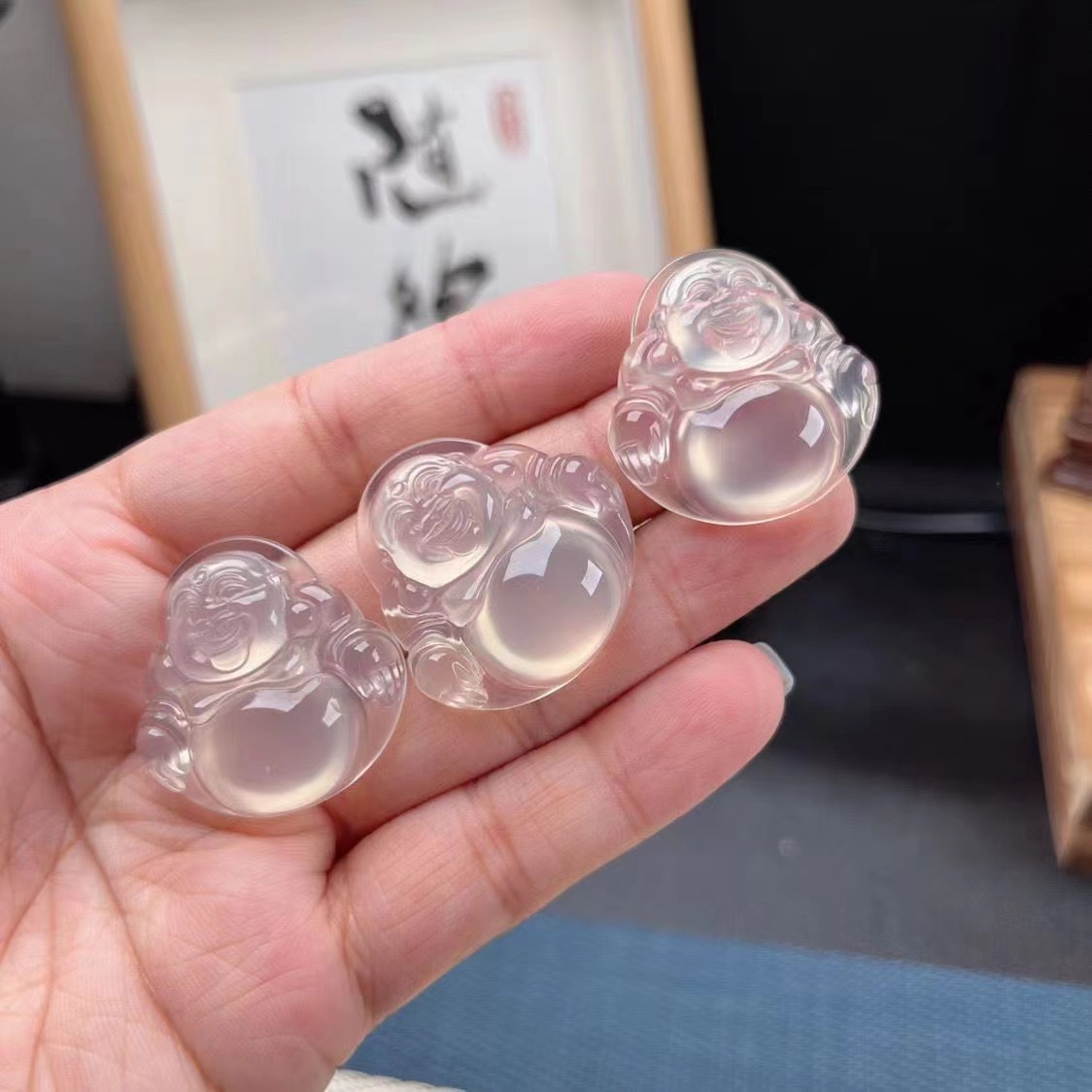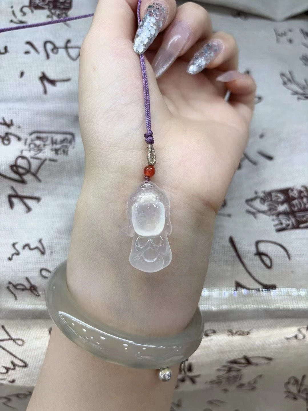 Гао Бин Лошадь халцедон Сянюнь замок подвеска агат личи замороженный белый лунный свет улыбка Будды