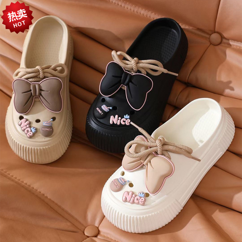 Симпатичные тапочки с бантом Леди Лето 2024 новые наступательные фекалии носить толстые подошвы для дома домашние тапочки