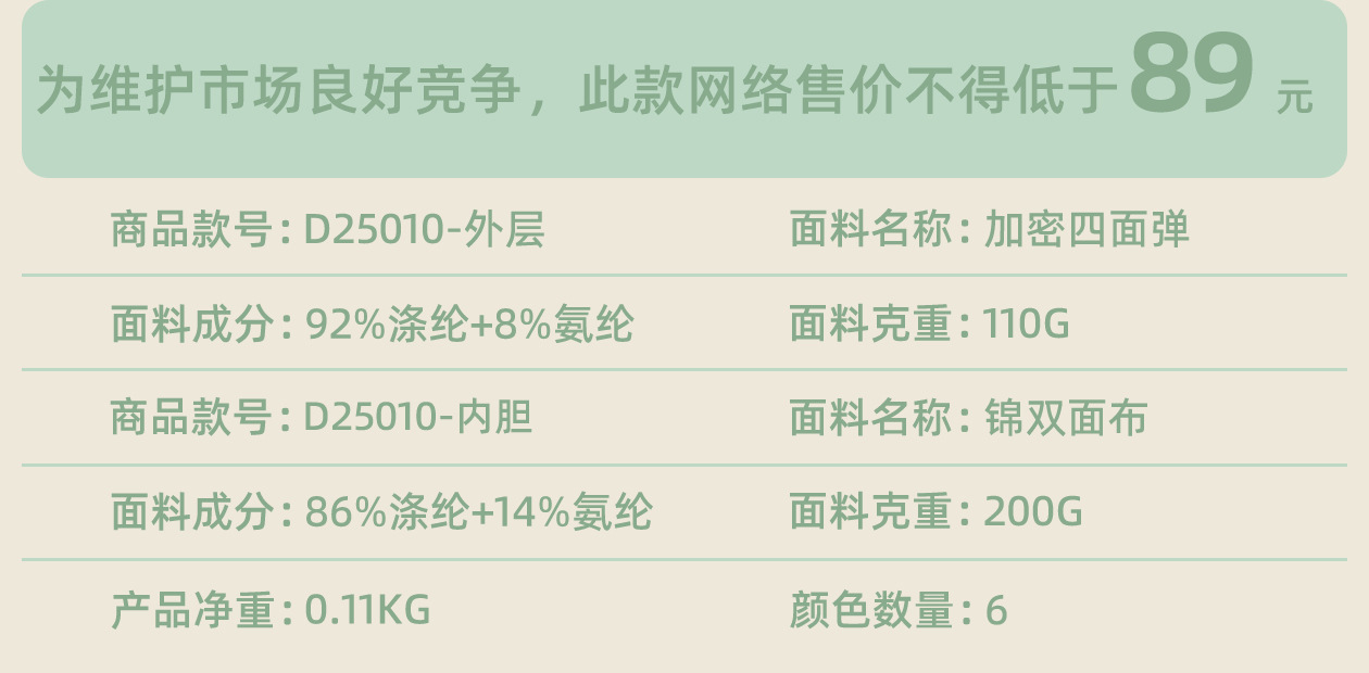 Содержание ингредиентов подкладки: