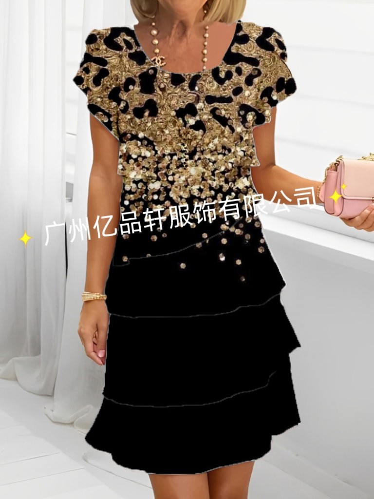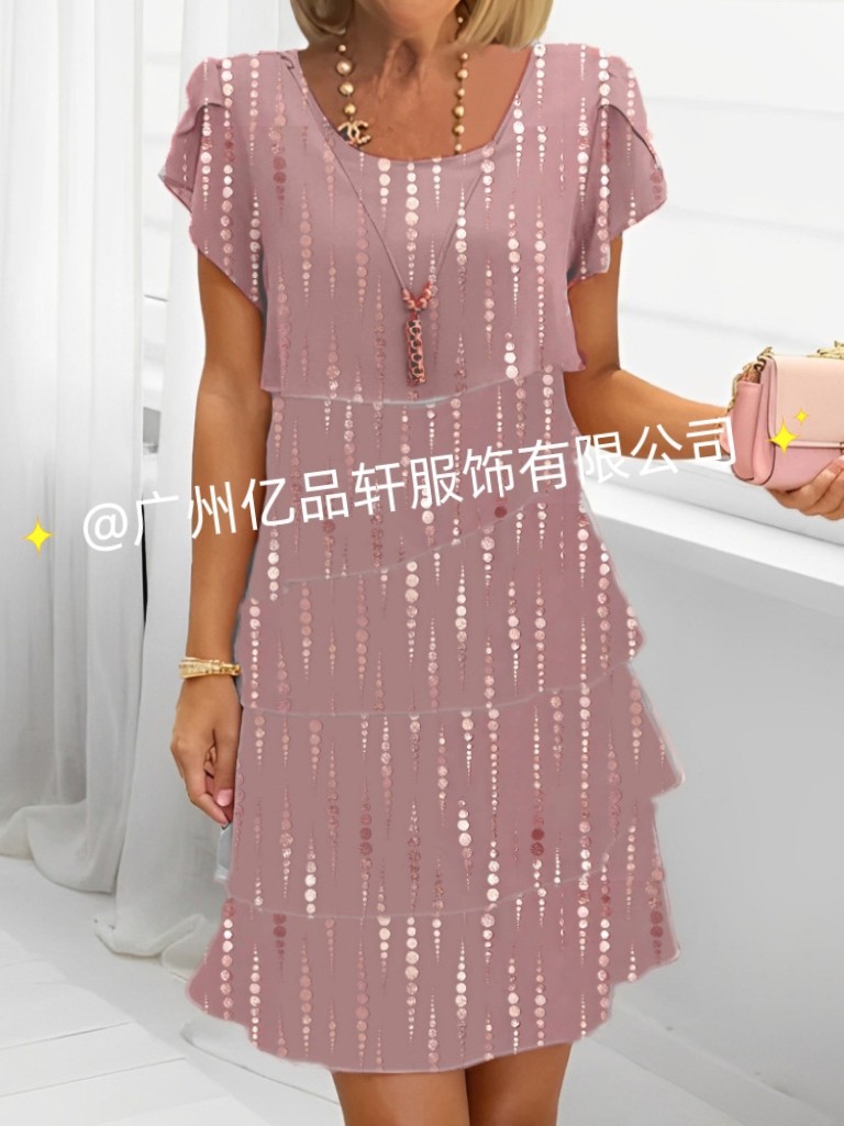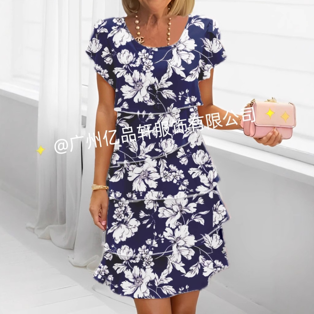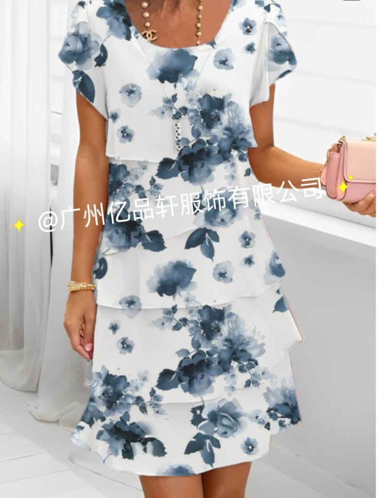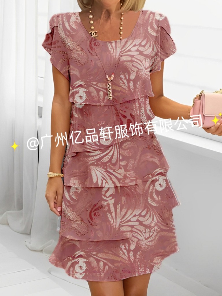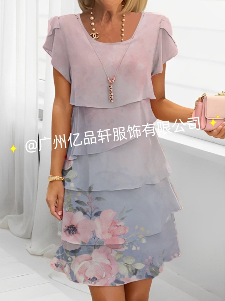 Европейская и американская AliExpress с коротким рукавом с круглым вырезом 3D с принтом Весеннее шифоновое платье