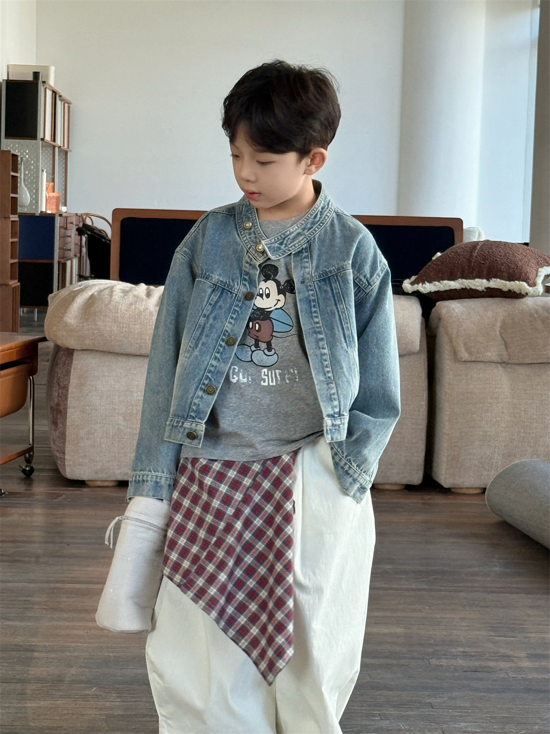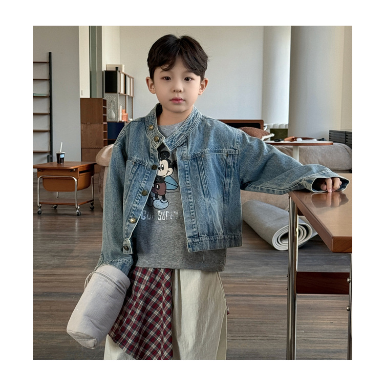 Детская куртка для мальчиков Cheese and Meow, новинка весны 202, джинсовая повседневная куртка в корейском стиле, модная детская куртка