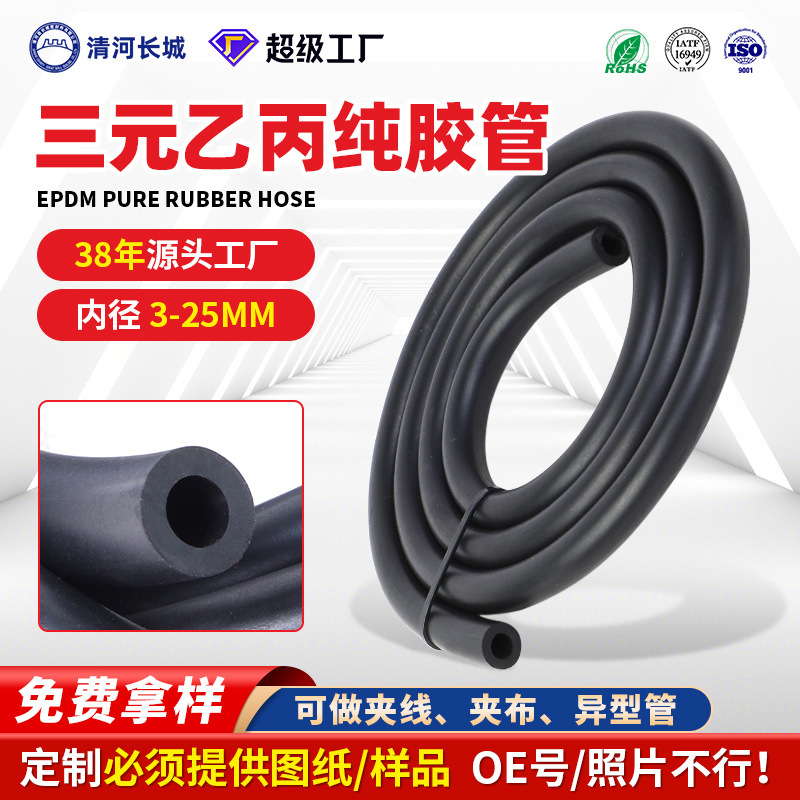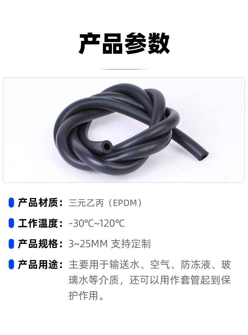 Резиновая трубка из ЭПДМ (этиленпропилендиенового каучука), черная гладкая трубка из чистого каучука, износостойкая трубка для охлаждающей жидкости с защитой от замерзания.