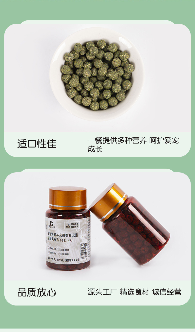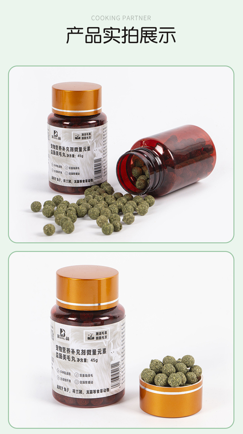 Биологически активная добавка Binli Rabbit Hair Beauty Pills 45г для питомцев, OEM-производство для морских свинок и шиншилл, оптом.