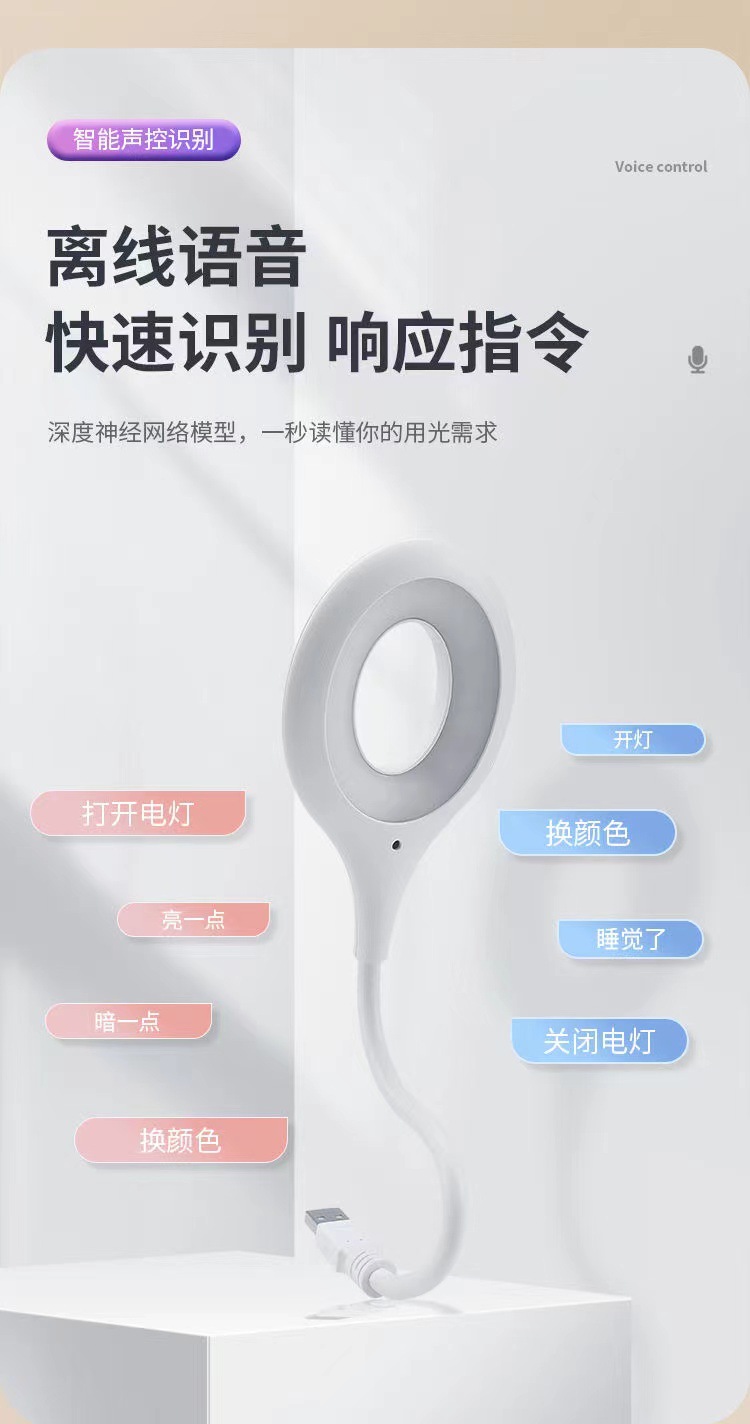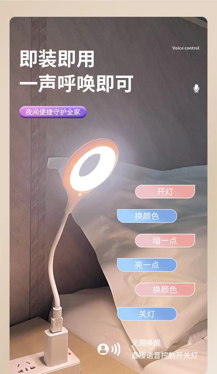 В наличии: китайский и английский USB-светильник с голосовым управлением, ночник с голосовым управлением для общежития, дома, кабинета, прикроватный светодиодный светильник, настольная лампа для общежития.