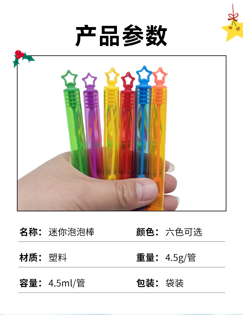 Трансграничная 6-цветная мини пятиконечная звезда пробная трубка пузырьковая палочка пустая бутылка пузырьковая палочка оптом