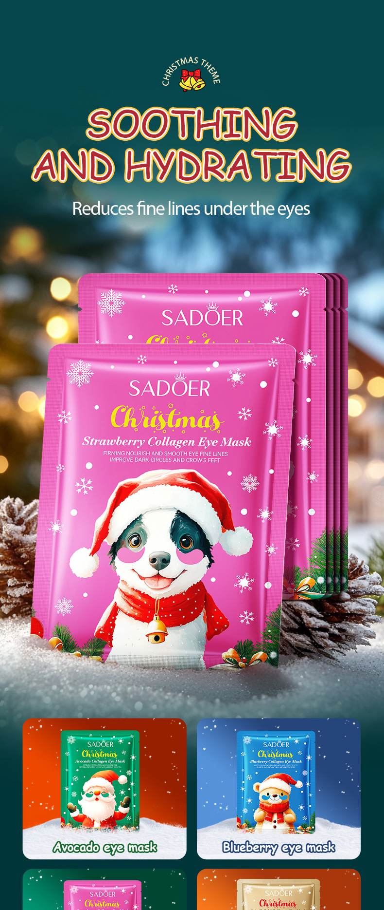 Полный английский SADOER Рождественская клубничная коллагеновая маска для глаз Увлажняющая маска для глаз для трансграничной внешней торговли оптом