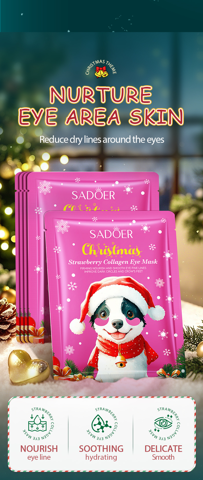SADOER Рождественская клубничная коллагеновая маска для глаз (версия на иностранном языке) 7,5 г