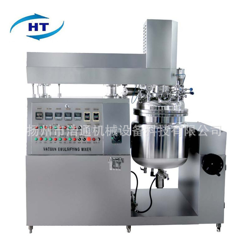 Двухсторонняя вакуумная эмульгирующая машина для смешивания и гомогенизации косметики, кремов и жидкостей, с фиксированным паровым нагревательным оборудованием.