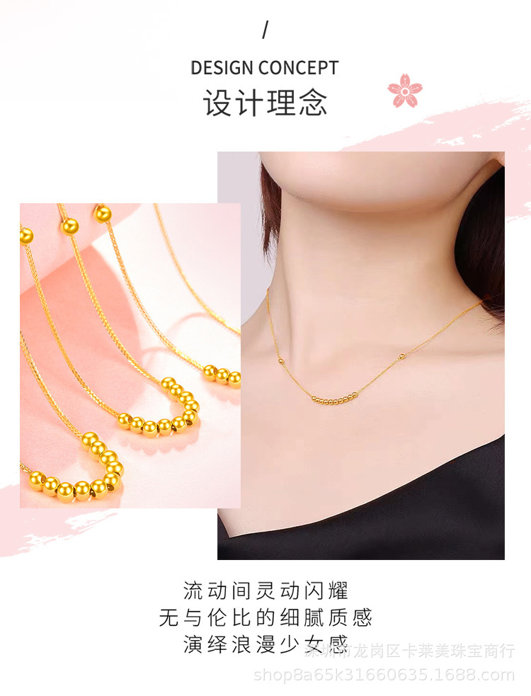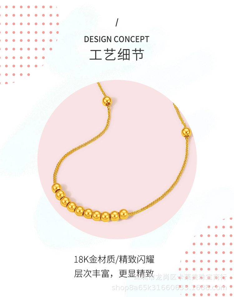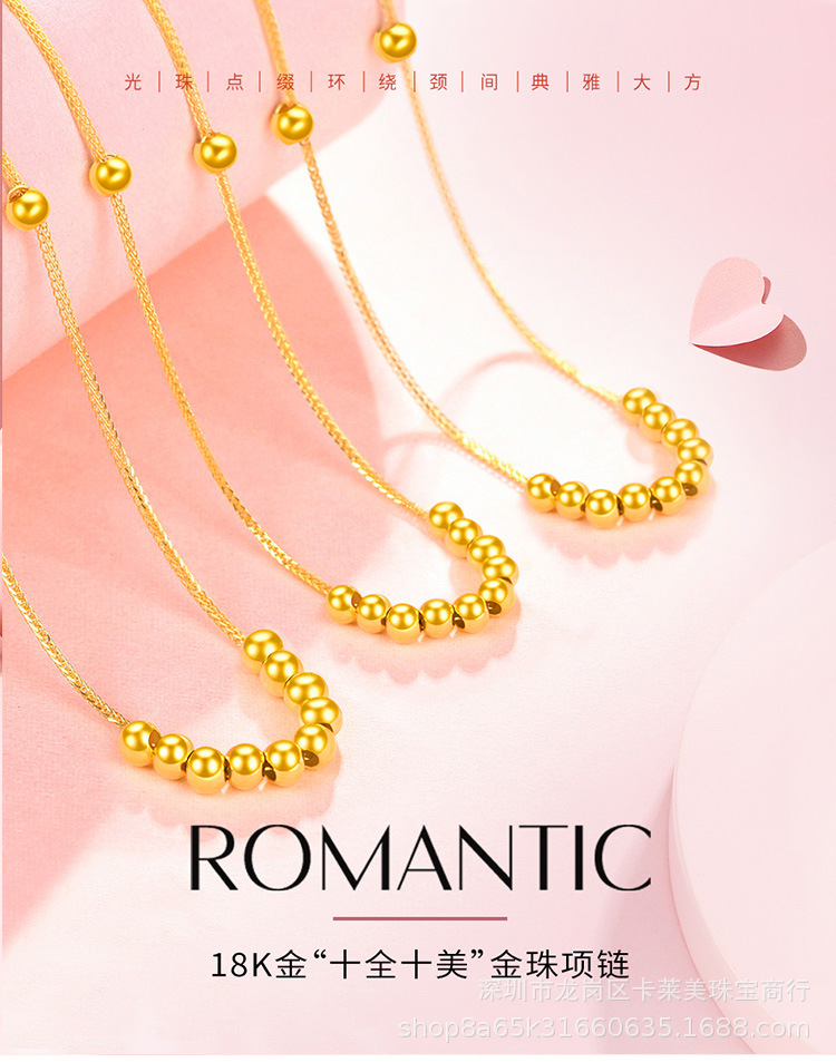 Ожерелье из золота 18 карат для женщин, цепочка из цветного золота AU750 с круглыми бусинами, подарок в прямом эфире для подруги, оптовая продажа золота от Shuibei.
