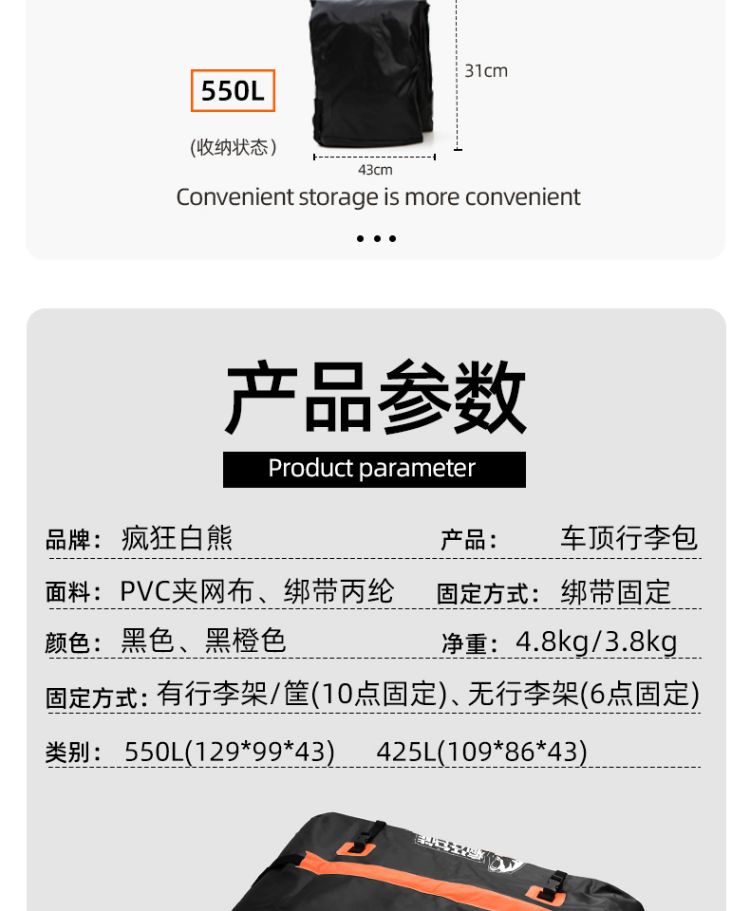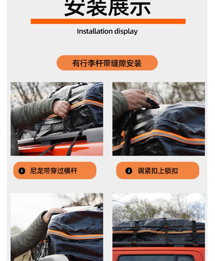 Подходит для багажных сумок на крышу, аксессуаров для автомобилей большой вместимости, модификации крыши, защиты от перенапряжения, водонепроницаемого хранения и сумок для автомобильных аксессуаров.