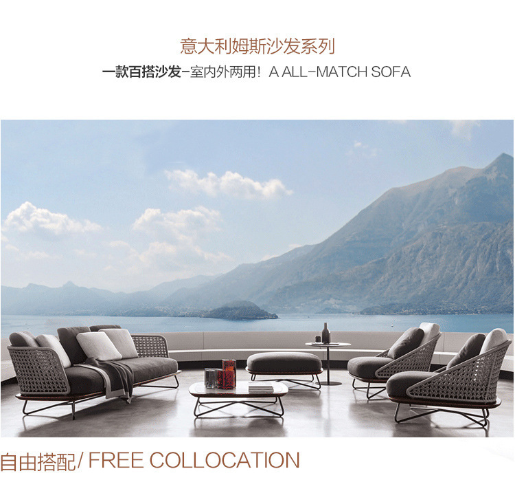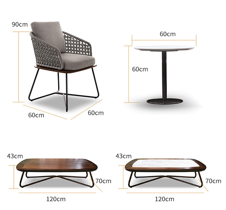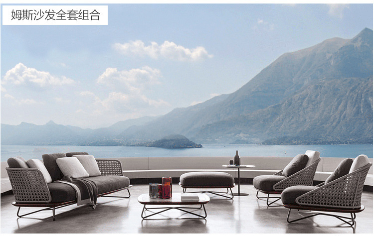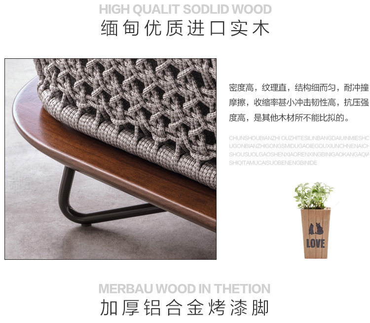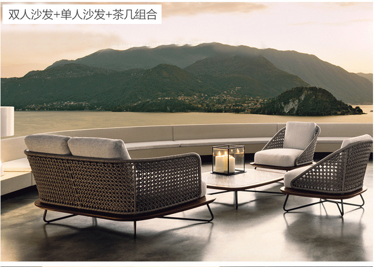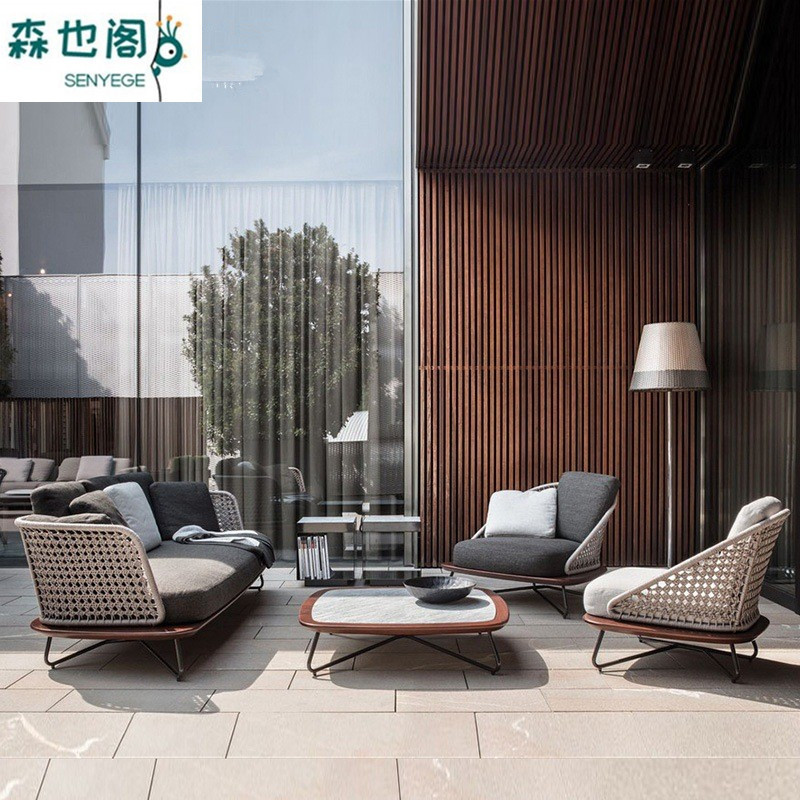 Открытый диван ананасовая решетка из цельного дерева повседневный ротанговый стул чайный стол комбинированный водонепроницаемый отель выставлен на террасу Вилла мебель для патио