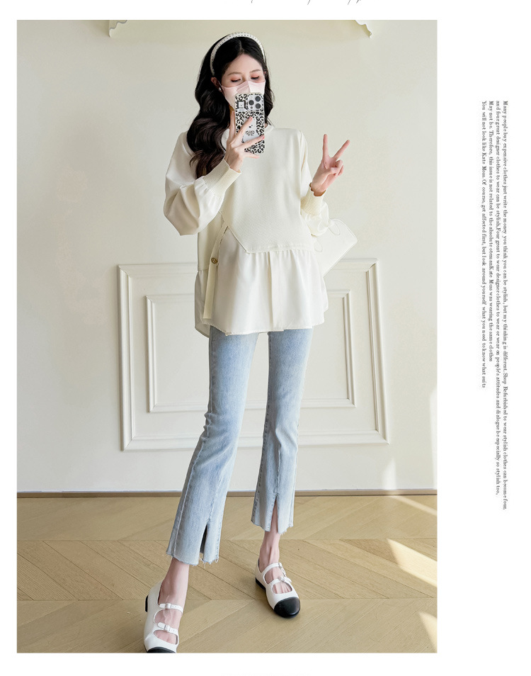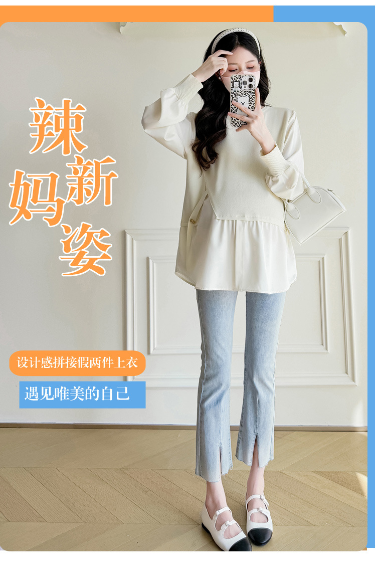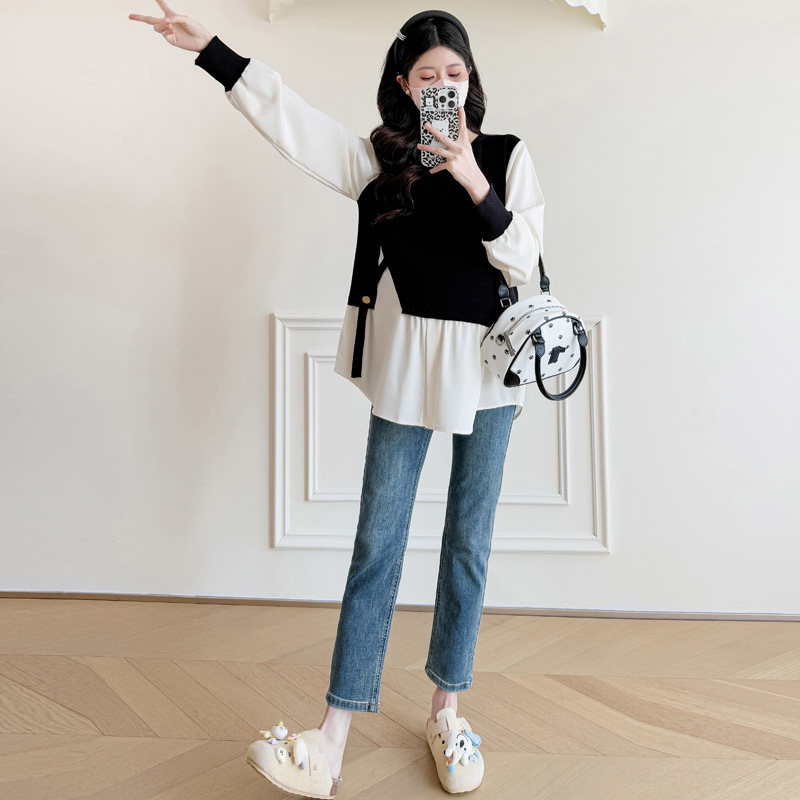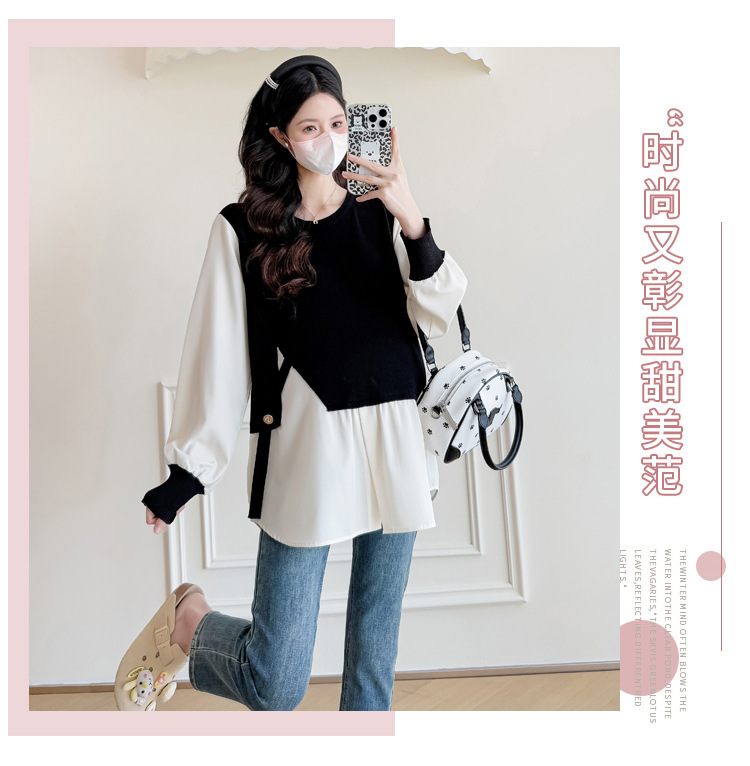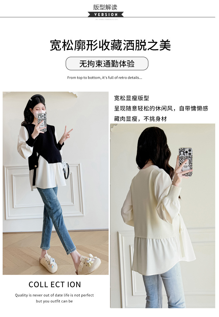 Одежда для беременных Весенний и Осенний прилив Мама мода новый топ сшитый дизайн чувствует себя с открытой вилкой поддельная рубашка из двух рубашек
