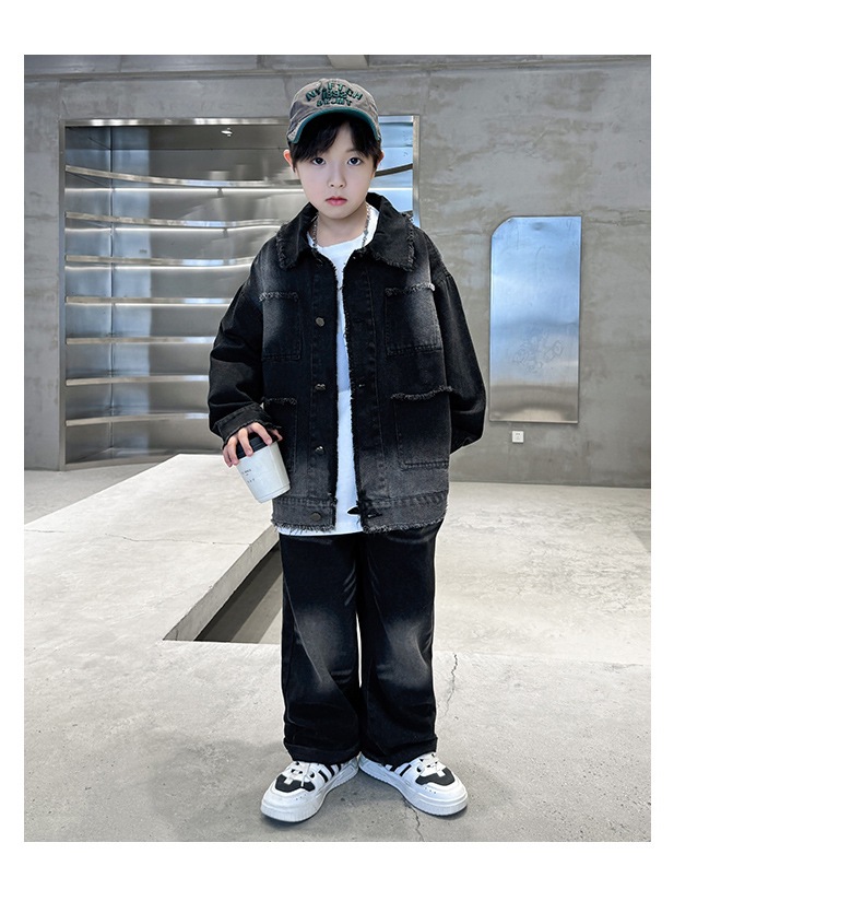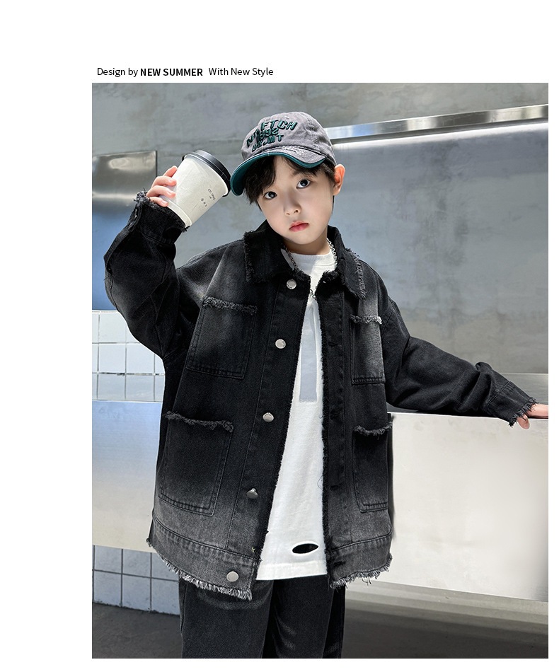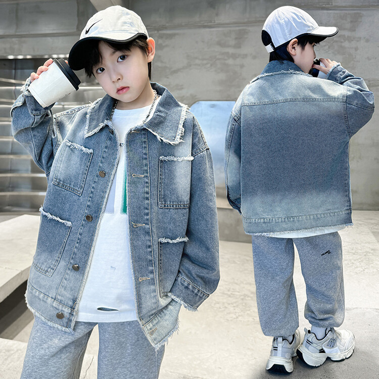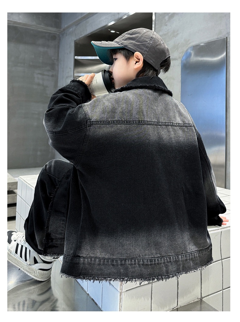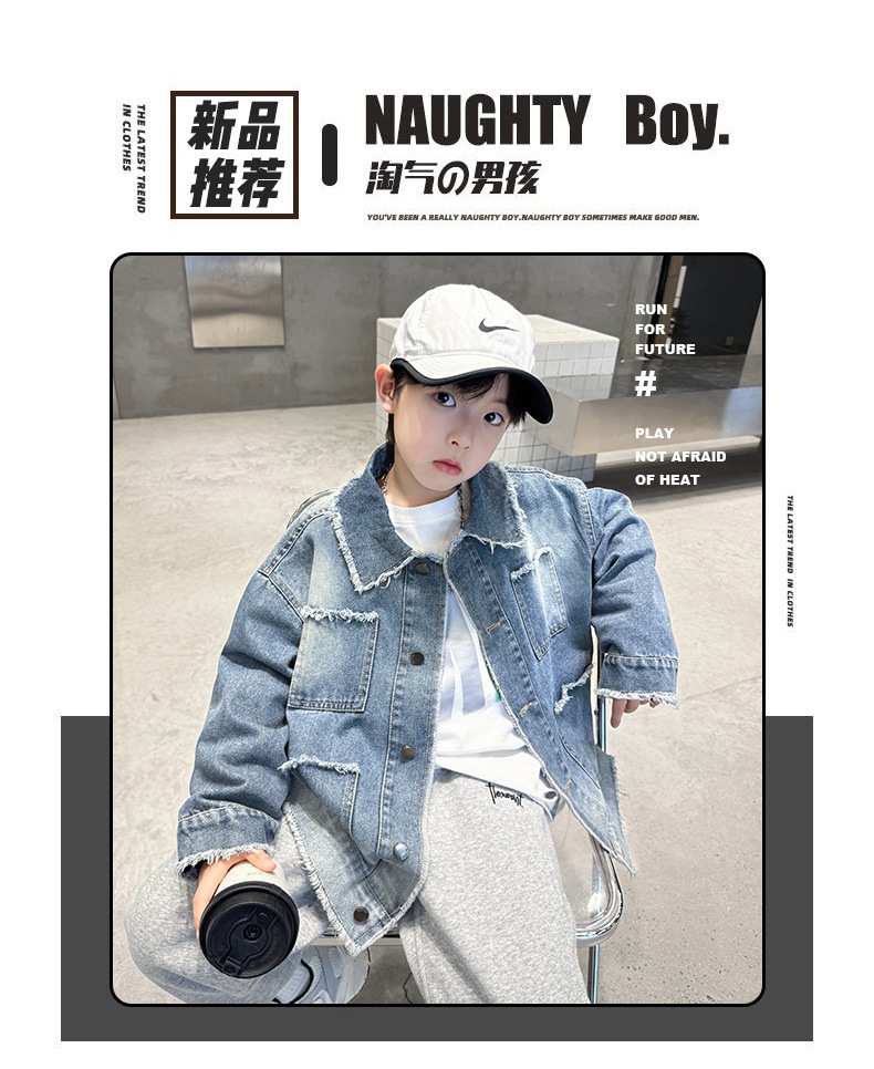 Джинсовая куртка для мальчиков 2025 Новый средний мальчик ретро куртка джинсовая куртка для детей красивый шерстяной куртка прилив