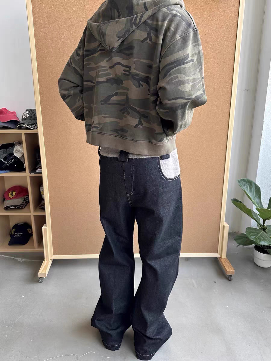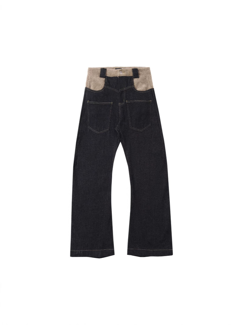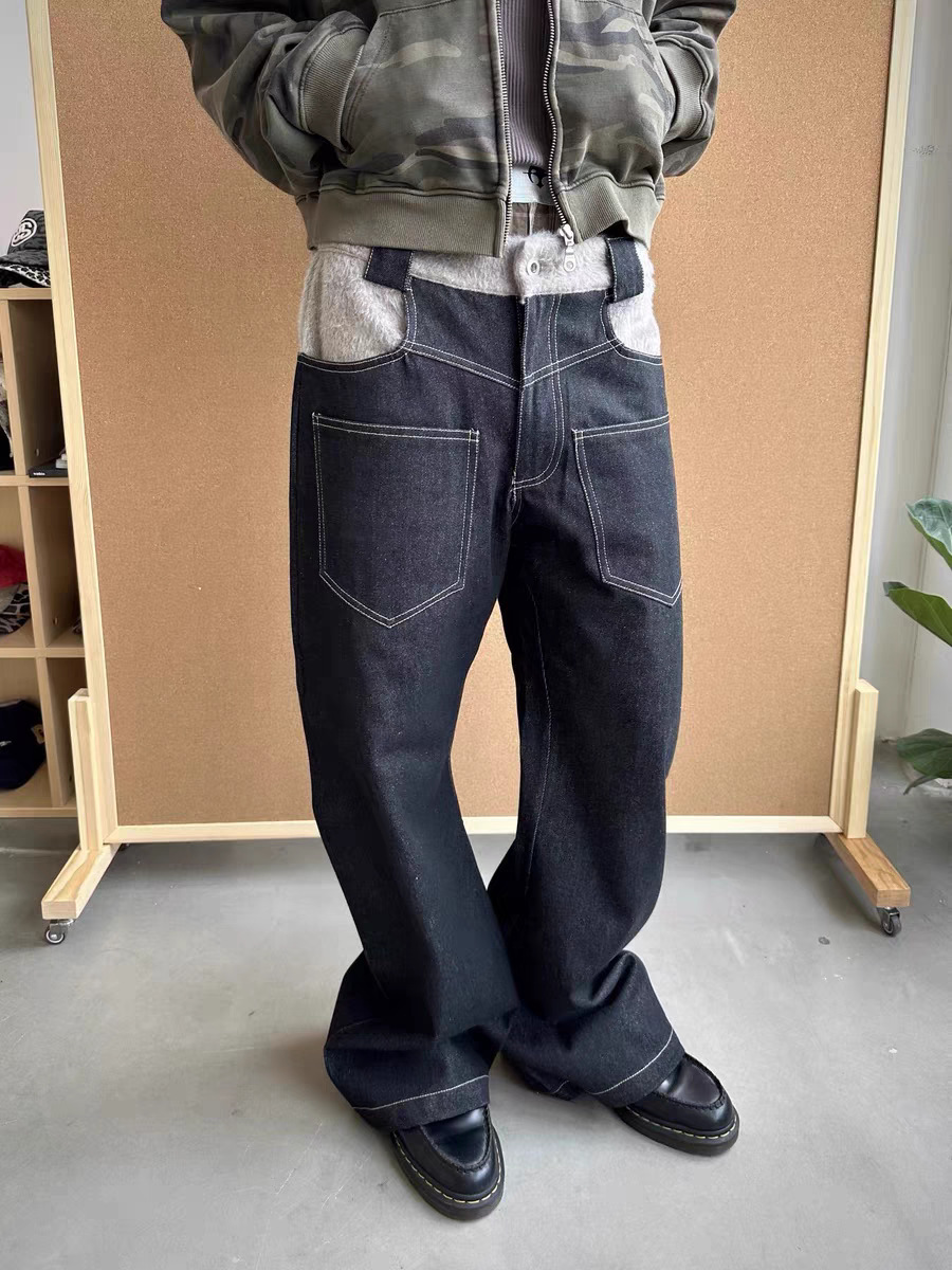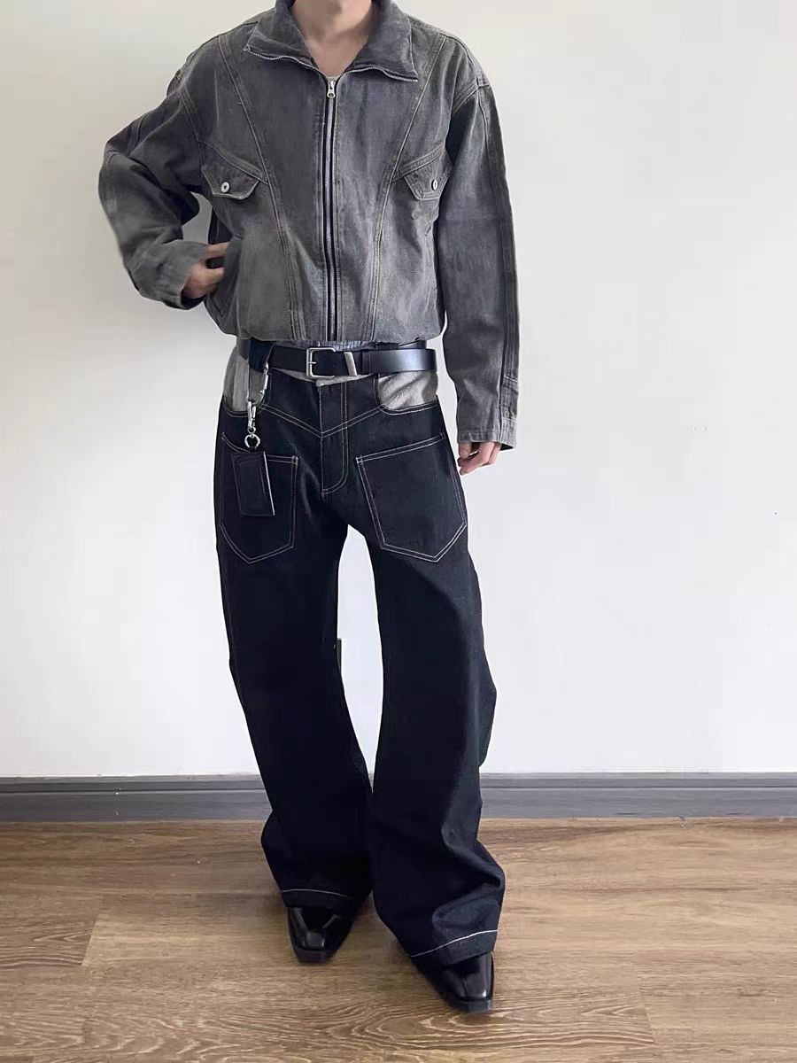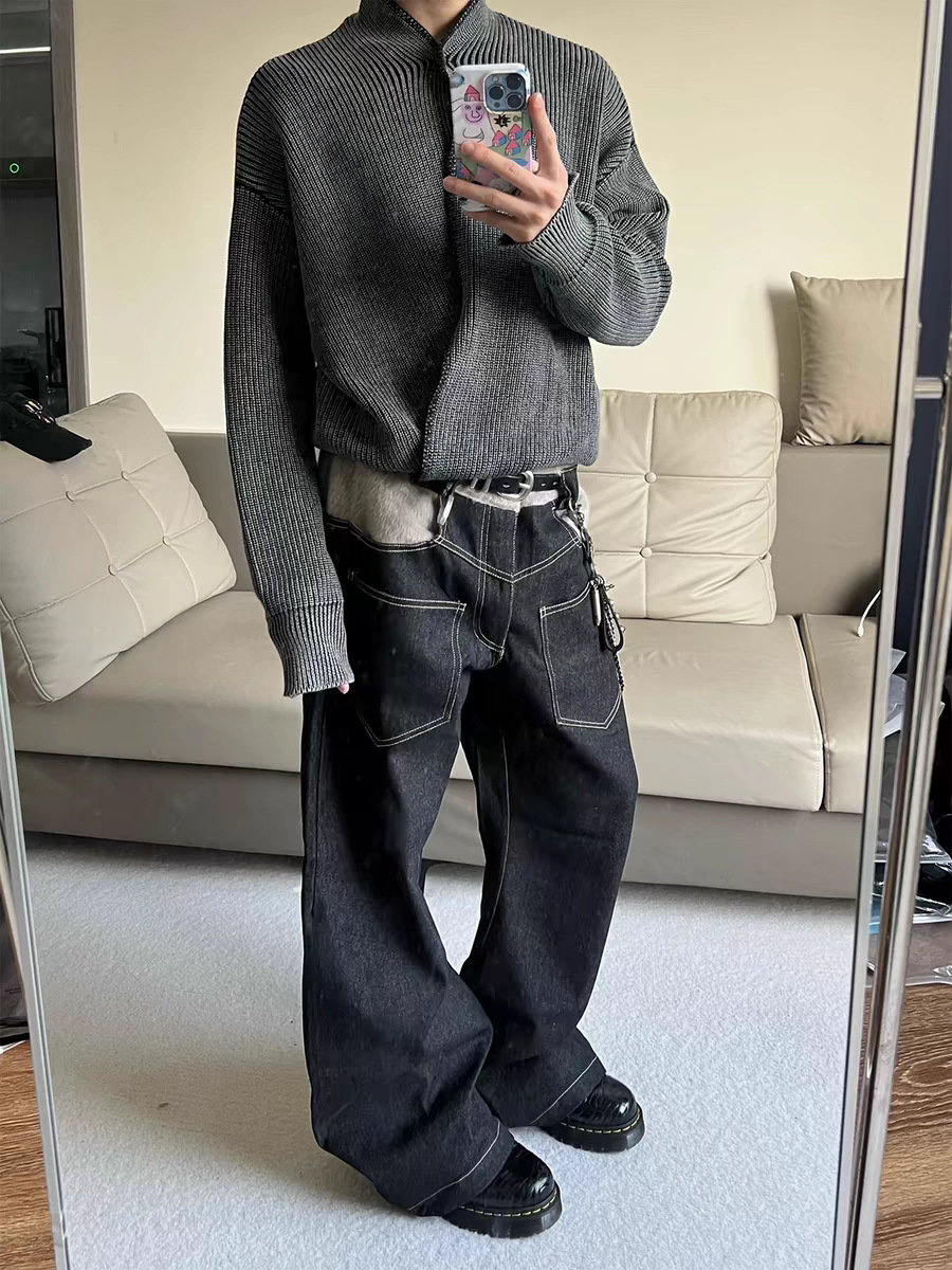 Оригинальный "шарф" шерстяной сшитый ятаган изогнутый силуэт японские случайные ретро прямые джинсы