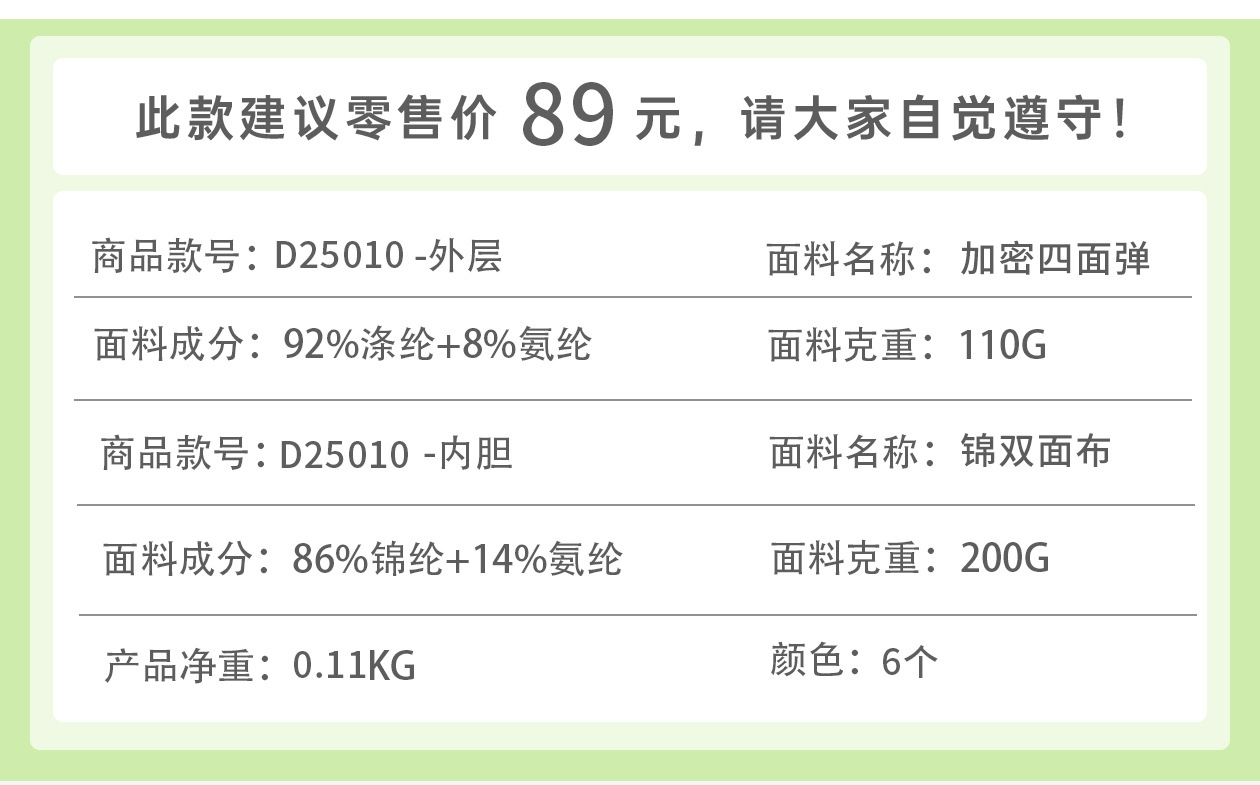 Содержание ингредиентов подкладки: