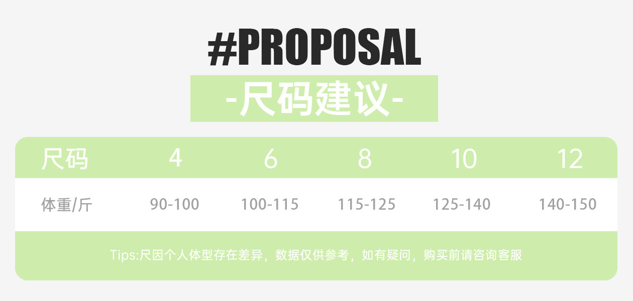 4( 45-50kg ); 6( 50-57.5kg ); 8( 57.5-62.5kg ); 10( 62.5-70kg ); 12( 70-75kg )