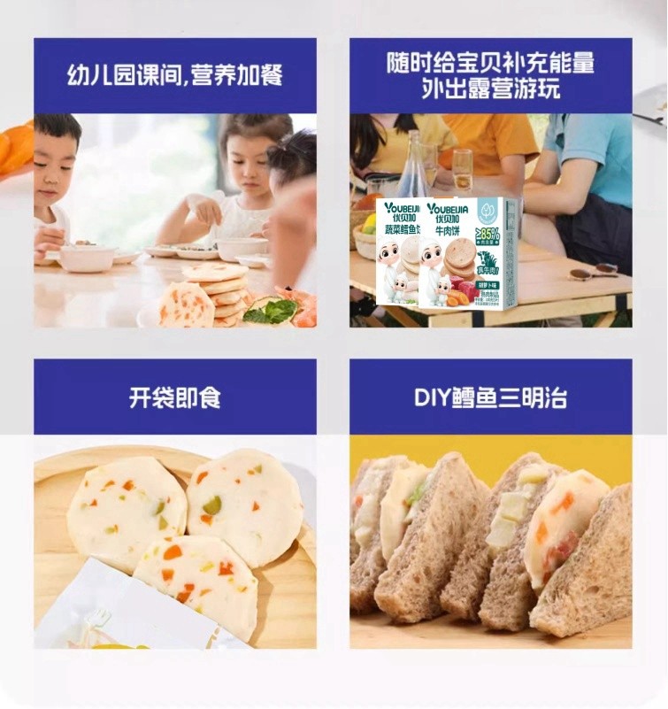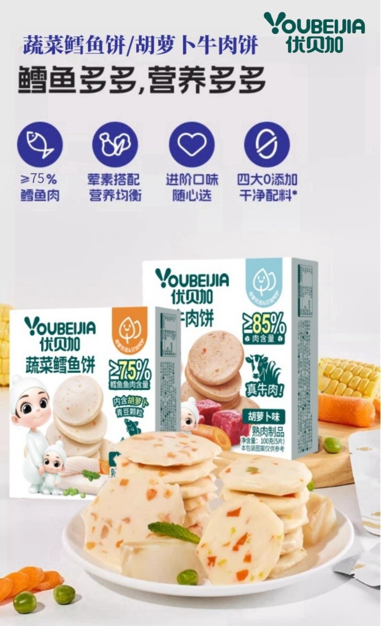 (26 января) Мясные котлеты Ubejia с овощами и треской, 100 г/упаковка, детский перекус, мясные сосиски, ветчинные сосиски