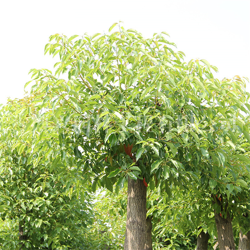 Камфорные саженцы, большие деревья у дороги во дворе, проекты вечнозеленого озеленения, ландшафтные деревья, лиственные растения, малолистные камфорные деревья.