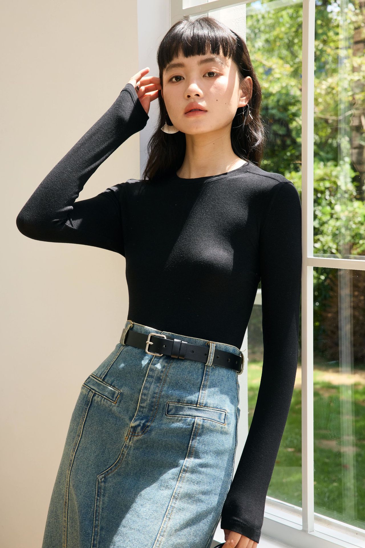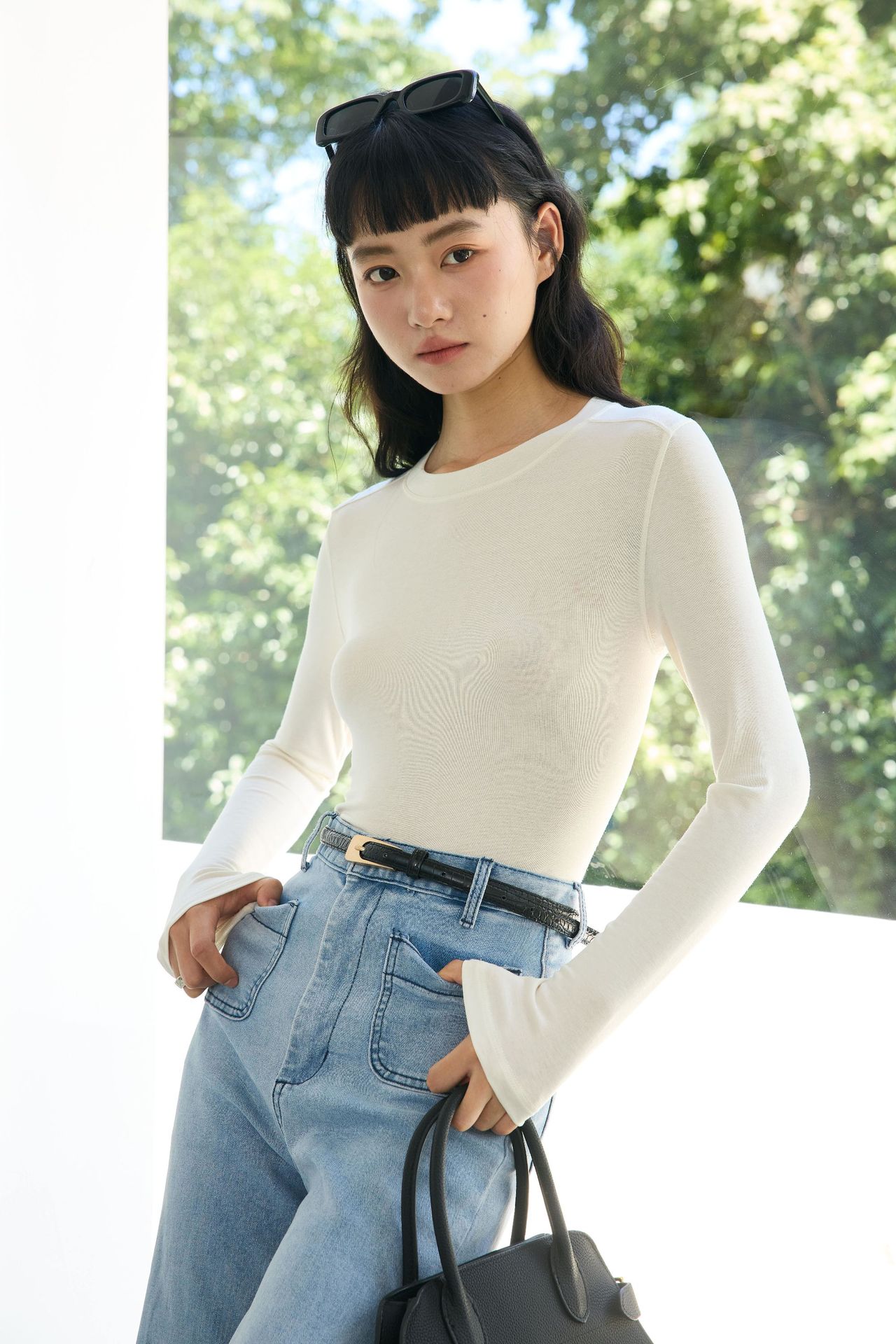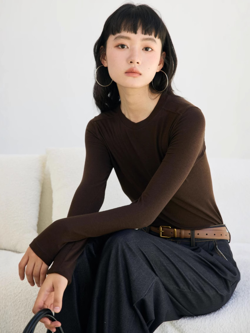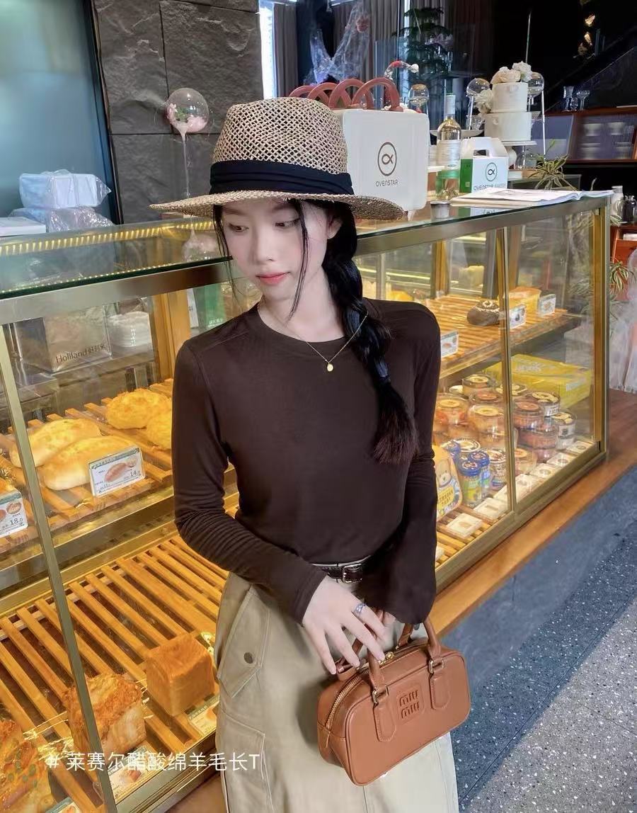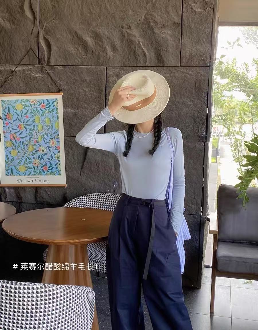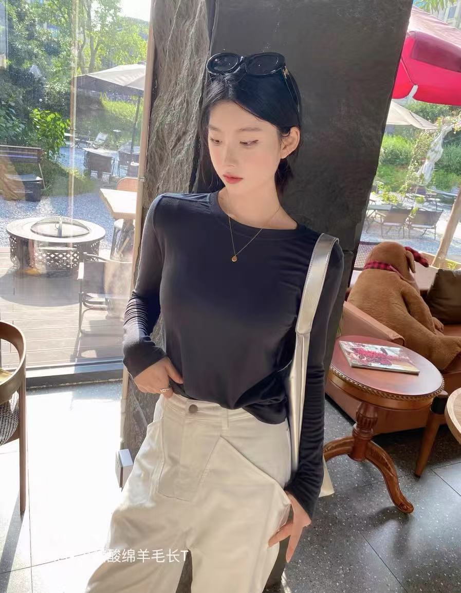 Весна и лето 2025 шерстяная рубашка Лесер с ацетатом с круглым вырезом вязаный свитер сплошной тонкая тонкая рубашка с длинными рукавами 9936