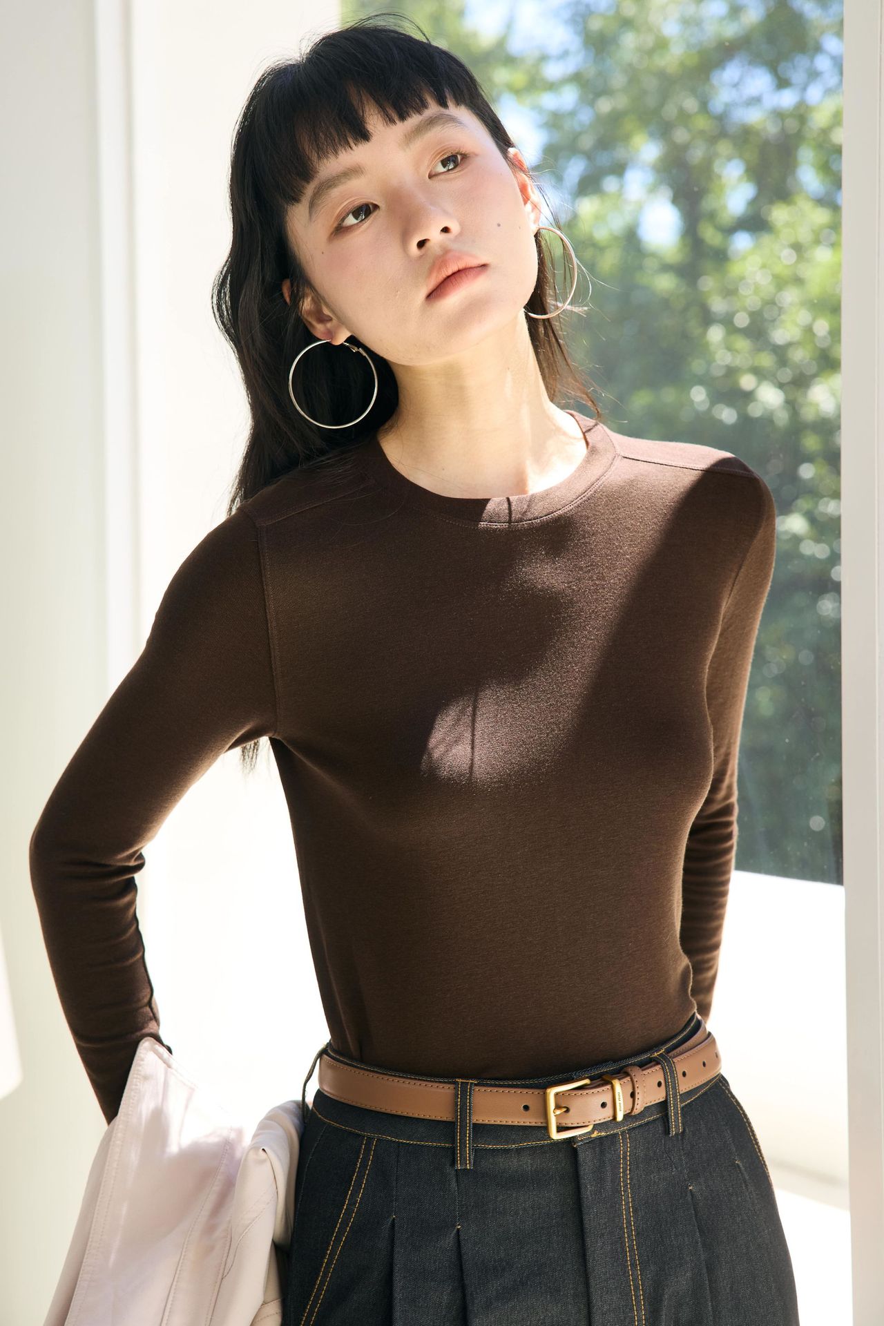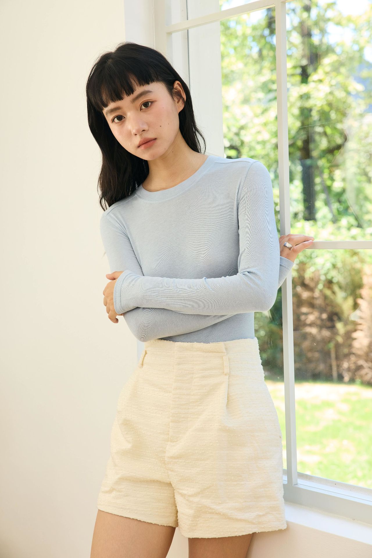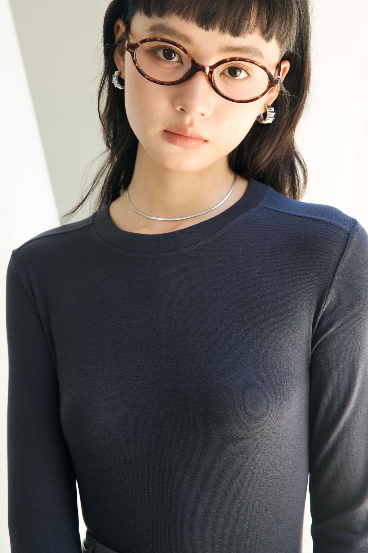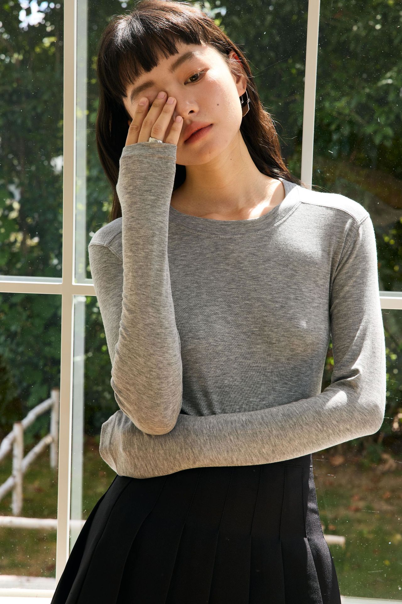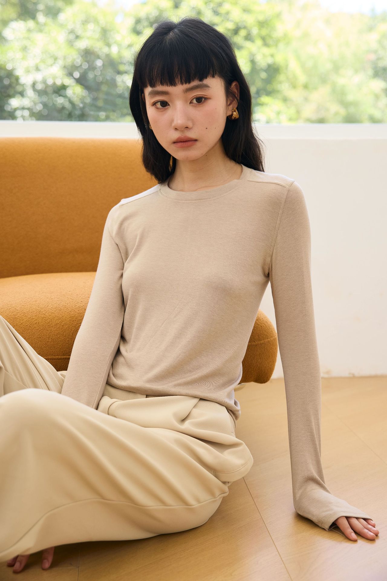 Весна и лето 2025 шерстяная рубашка Лесер с ацетатом с круглым вырезом вязаный свитер сплошной тонкая тонкая рубашка с длинными рукавами 9936