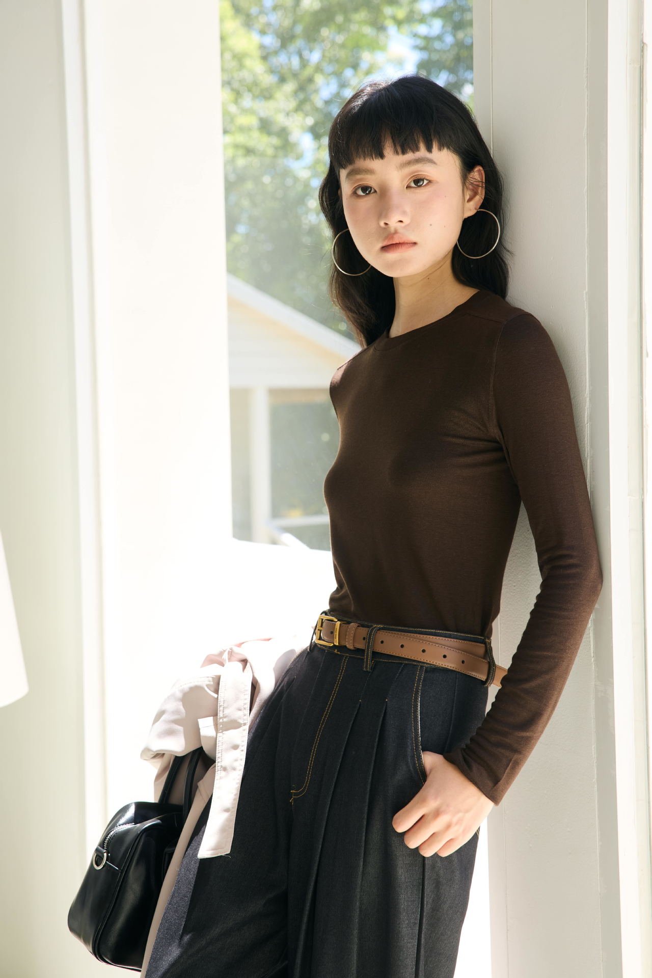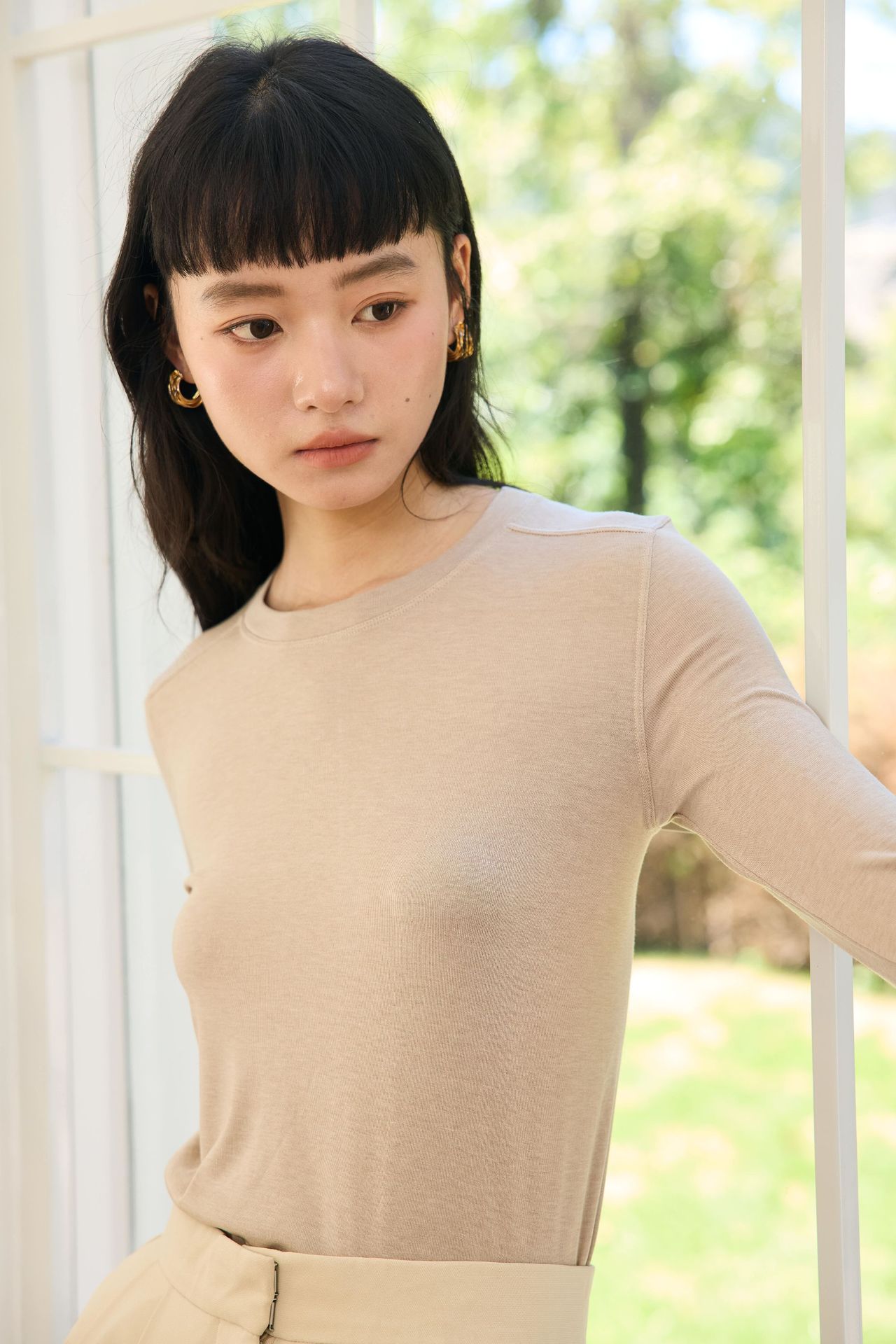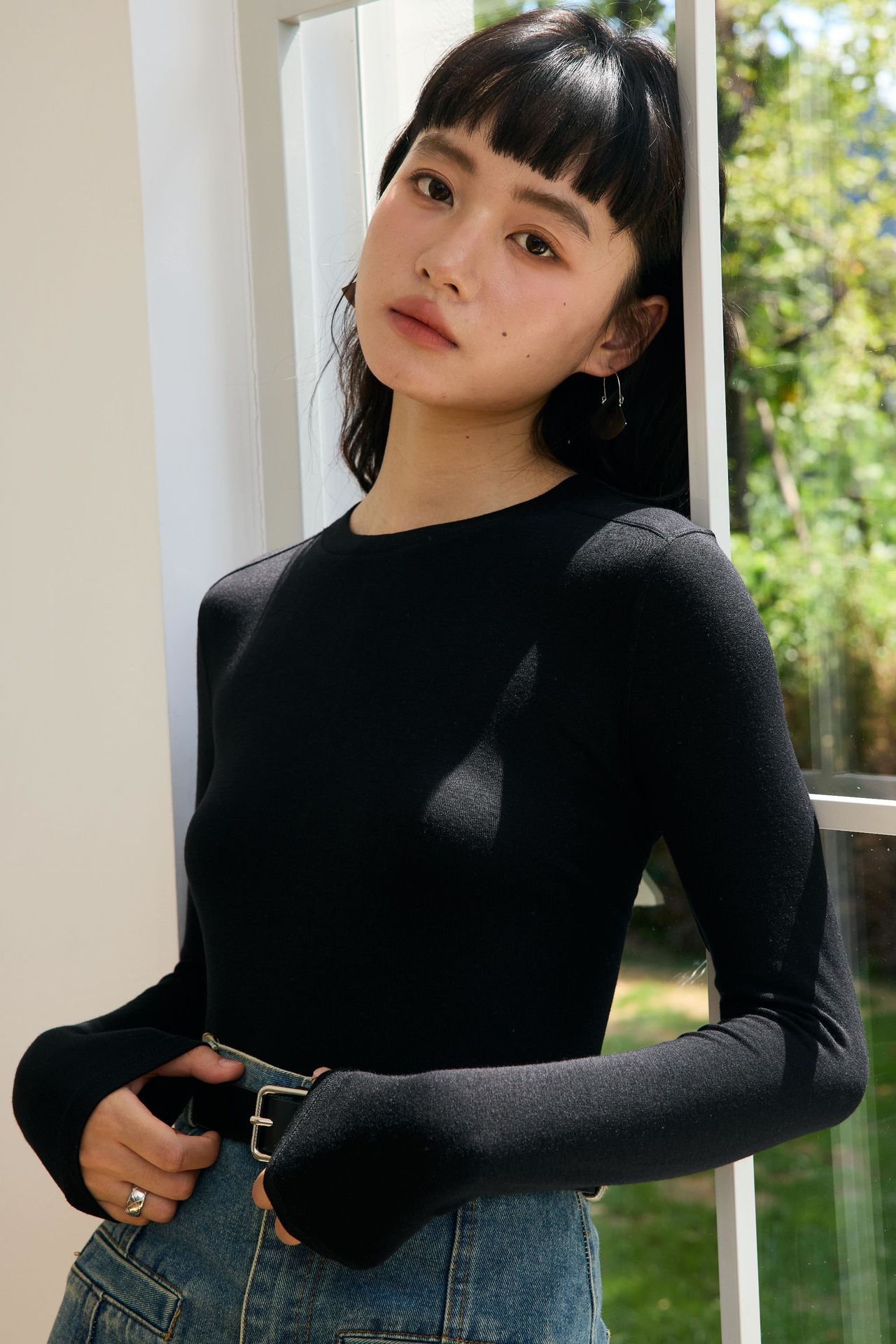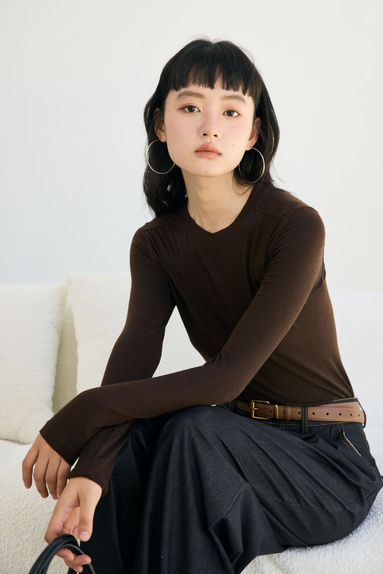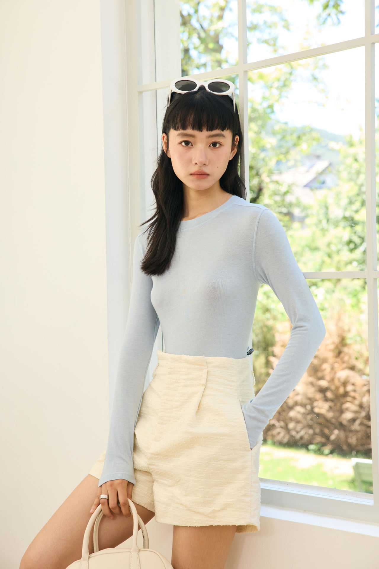 Весна и лето 2025 шерстяная рубашка Лесер с ацетатом с круглым вырезом вязаный свитер сплошной тонкая тонкая рубашка с длинными рукавами 9936