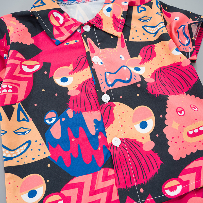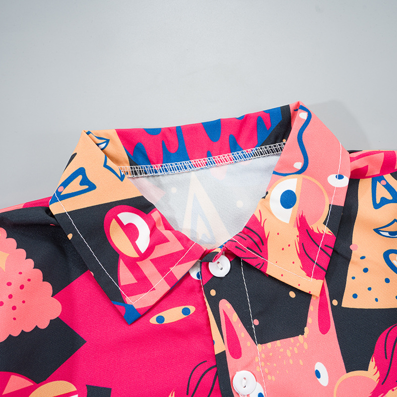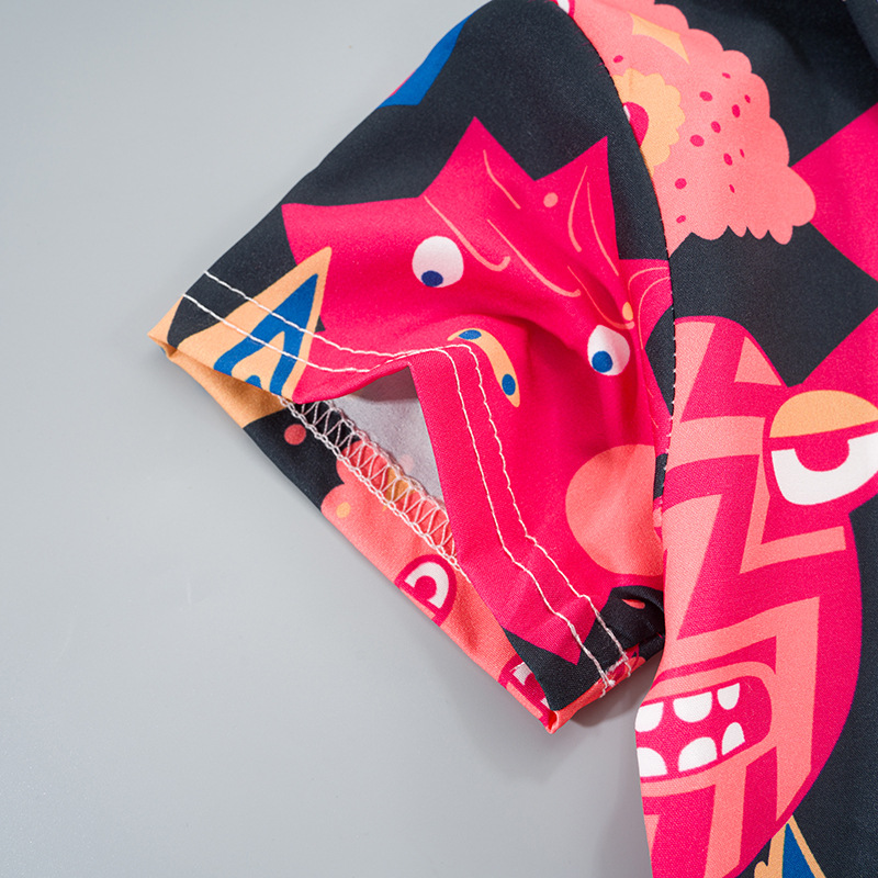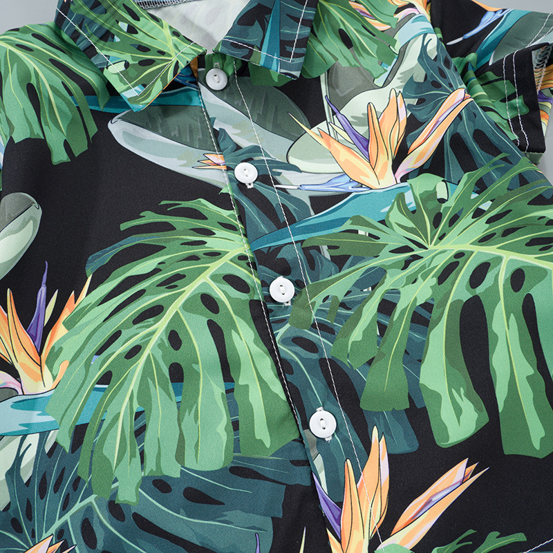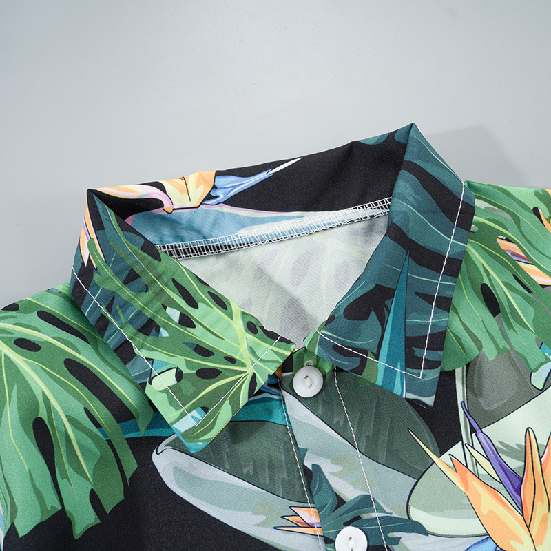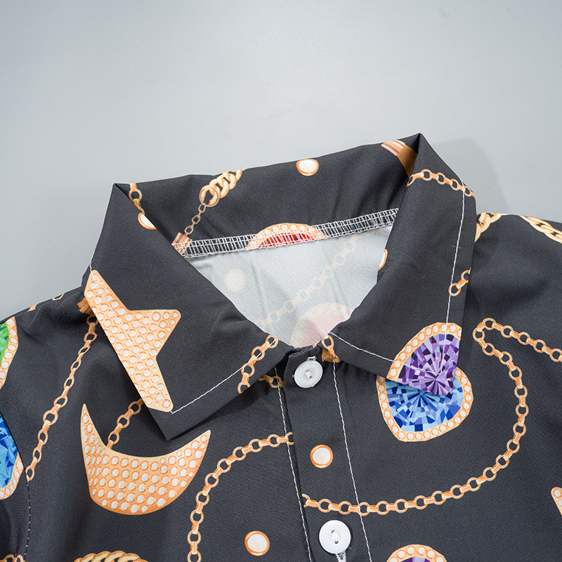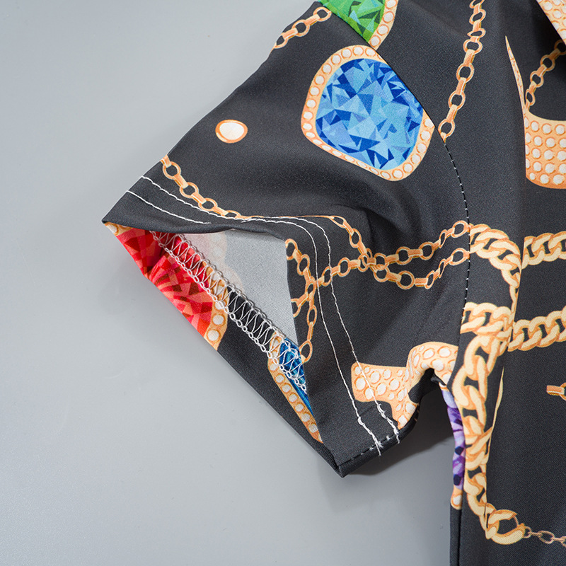 2025 Летний мальчик тонкий повседневный кубинский воротник молодежный принт легкая роскошная блузка с короткими рукавами 3D цифровая печать