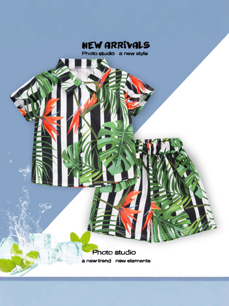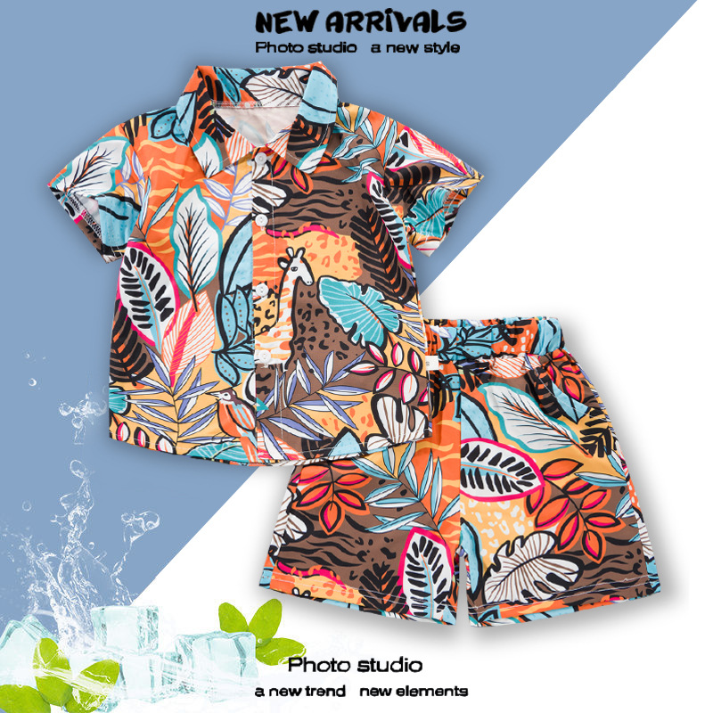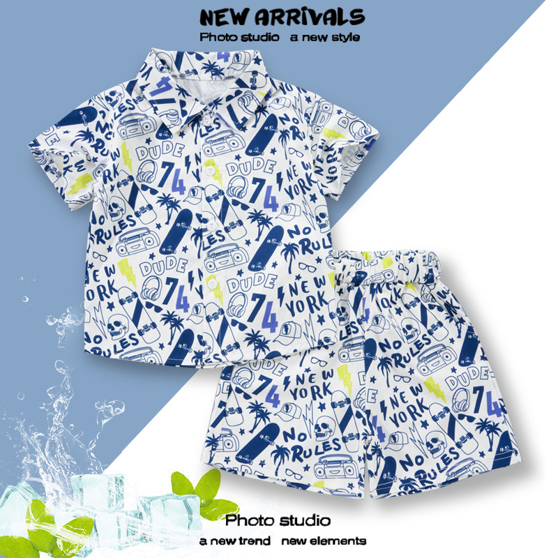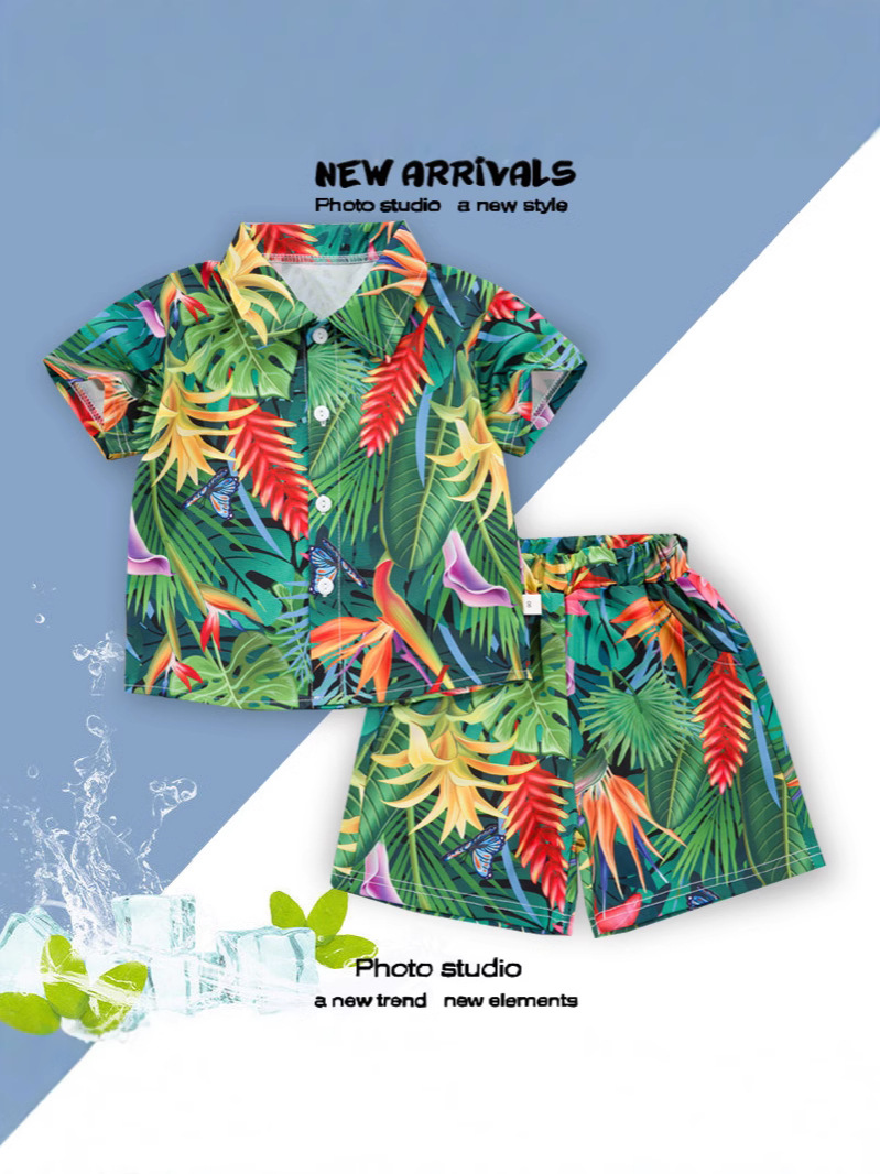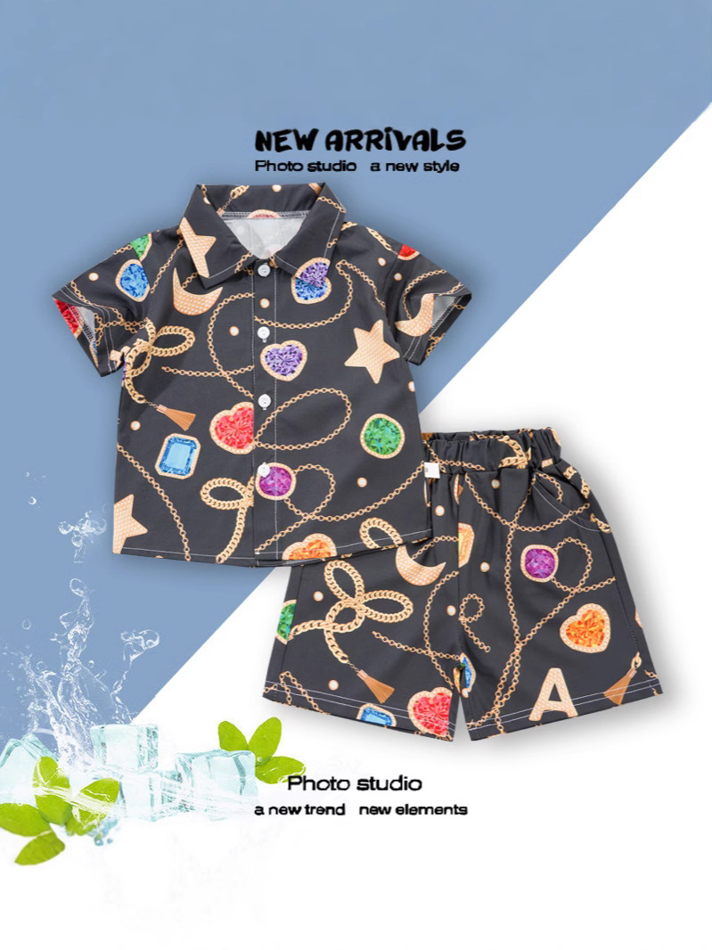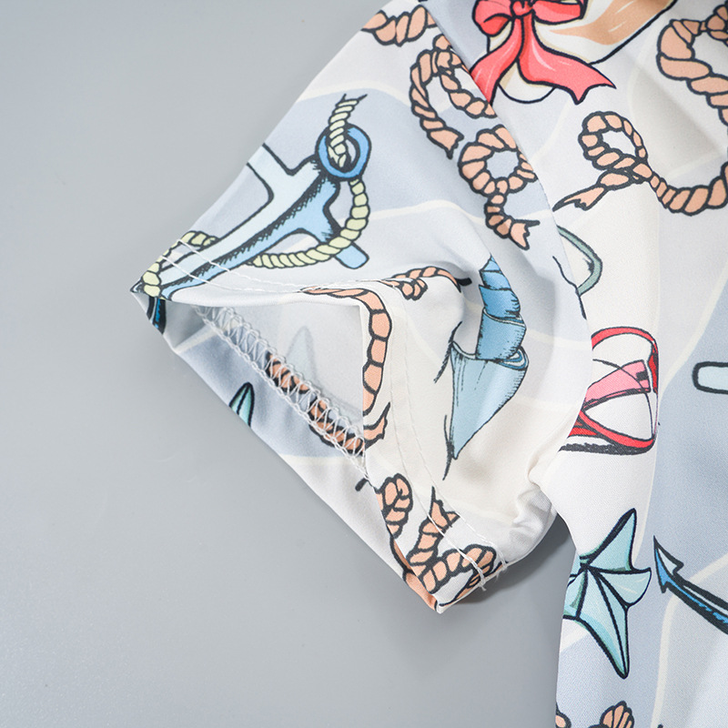 2025 Летний мальчик тонкий повседневный кубинский воротник молодежный принт легкая роскошная блузка с короткими рукавами 3D цифровая печать