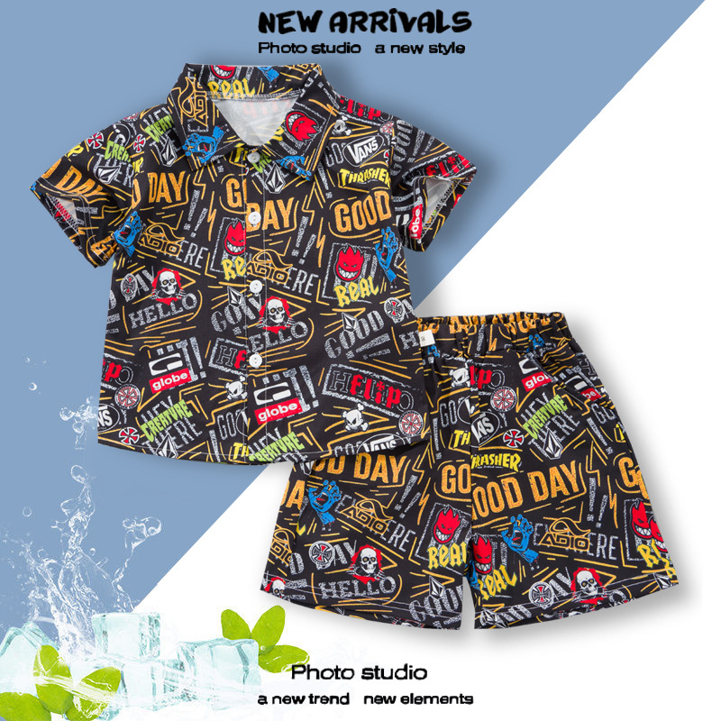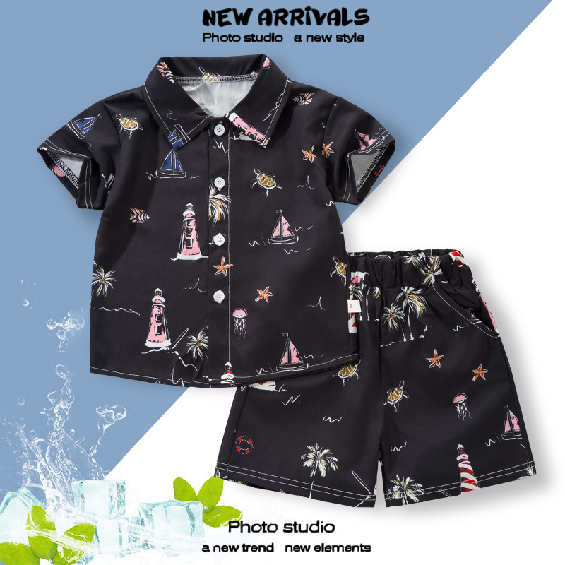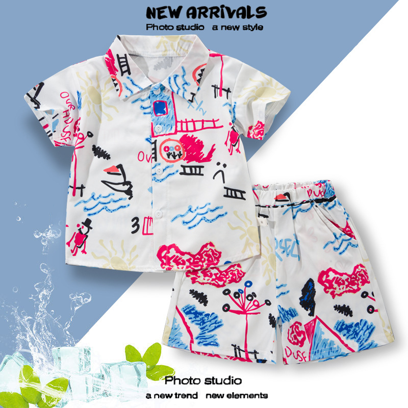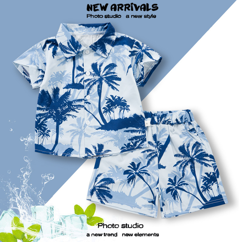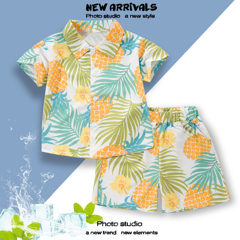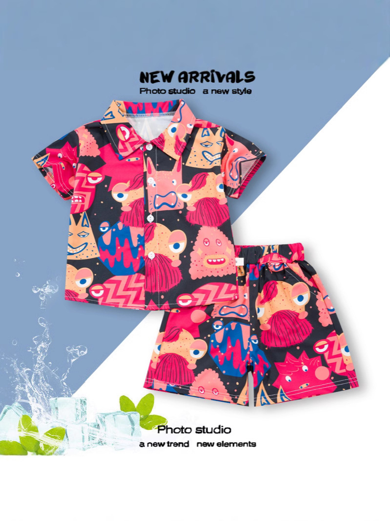 2025 Летний мальчик тонкий повседневный кубинский воротник молодежный принт легкая роскошная блузка с короткими рукавами 3D цифровая печать