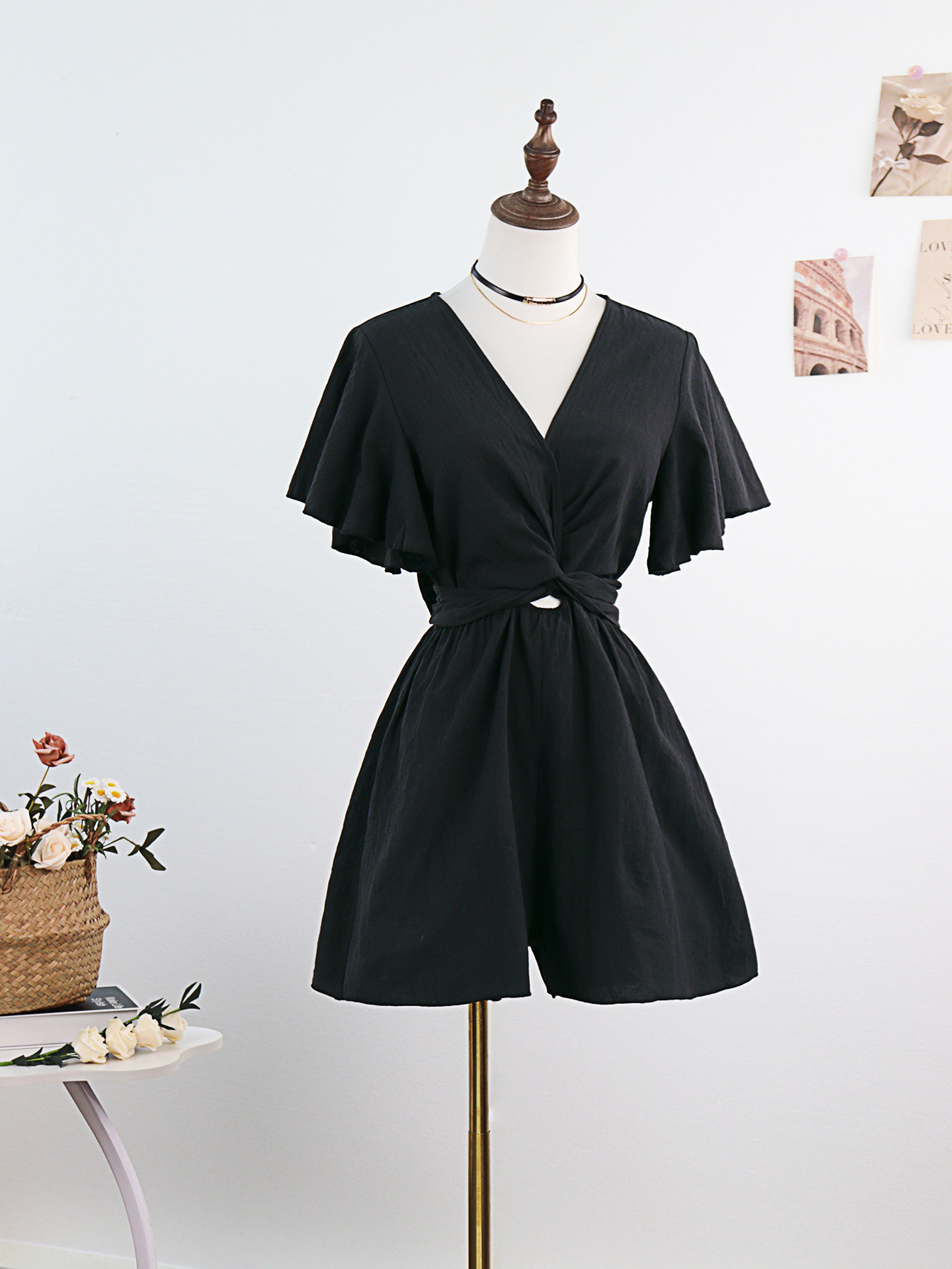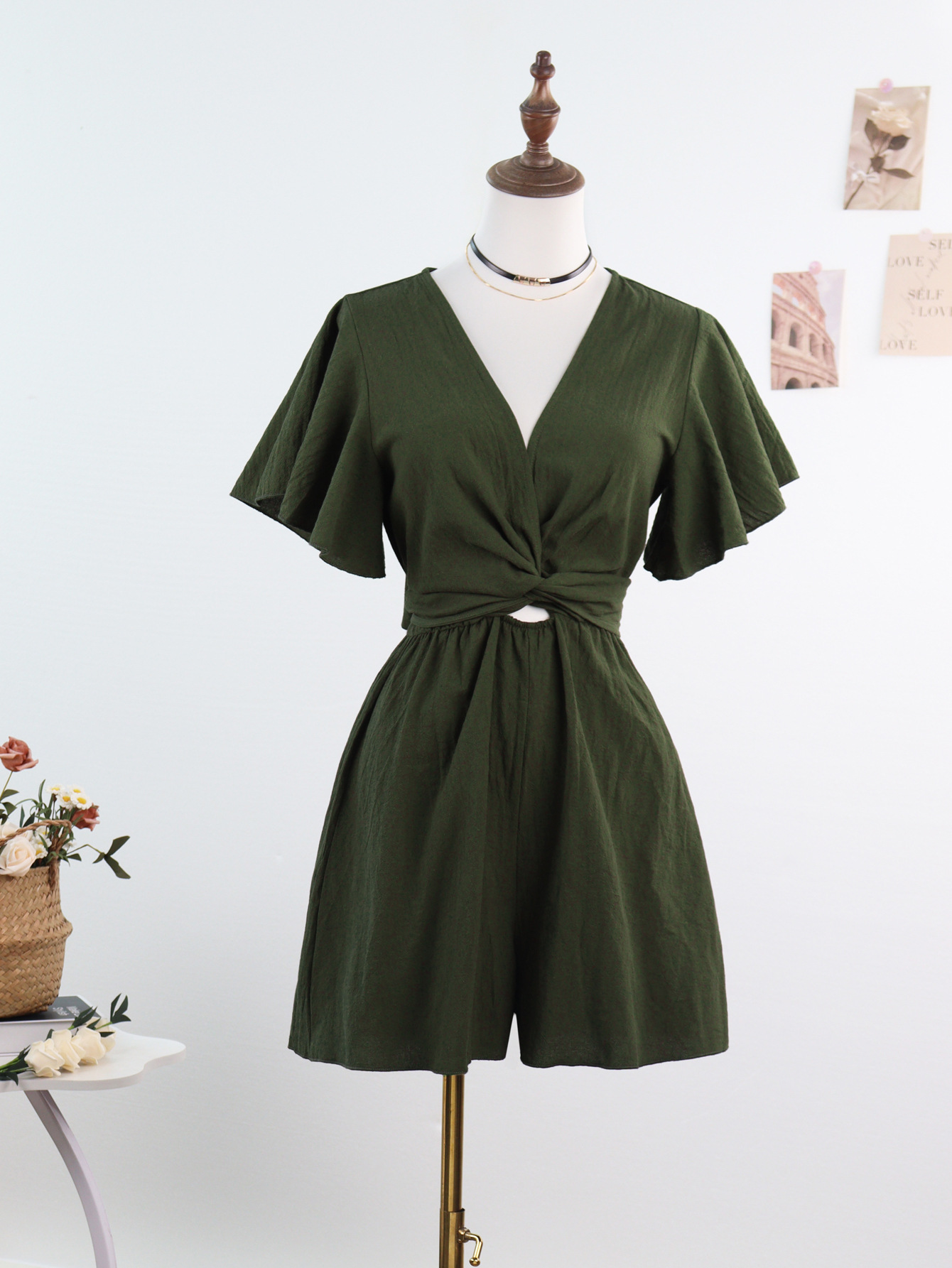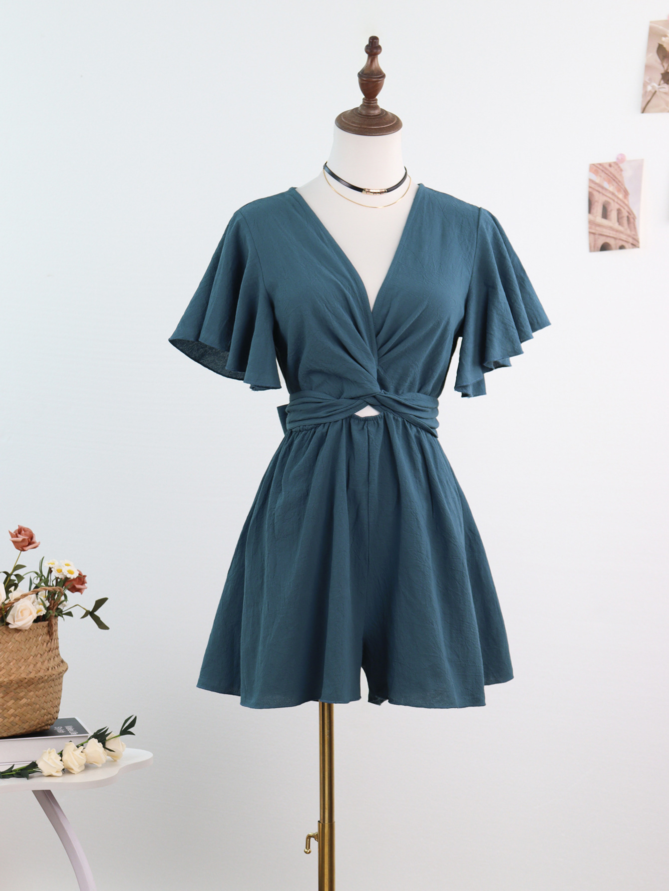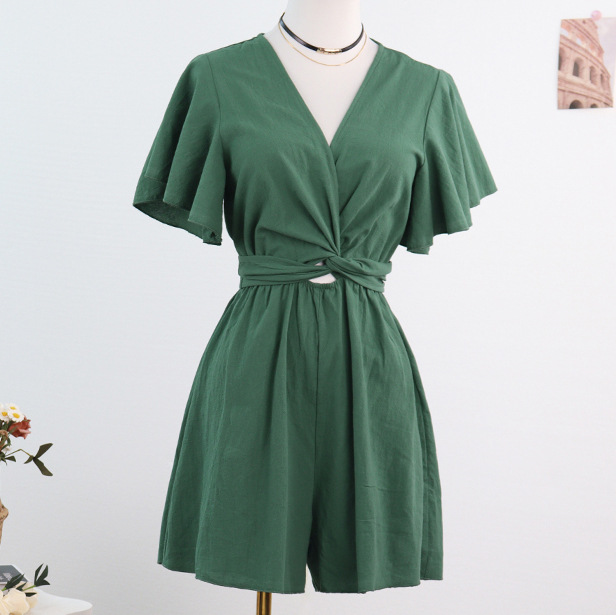 Независимый дизайн Европейский и Американский трансграничный Amazon сплошной цвет комбинезон женский 2025 весна и лето темперамент коммутирующие комбинезоны с V-образным вырезом